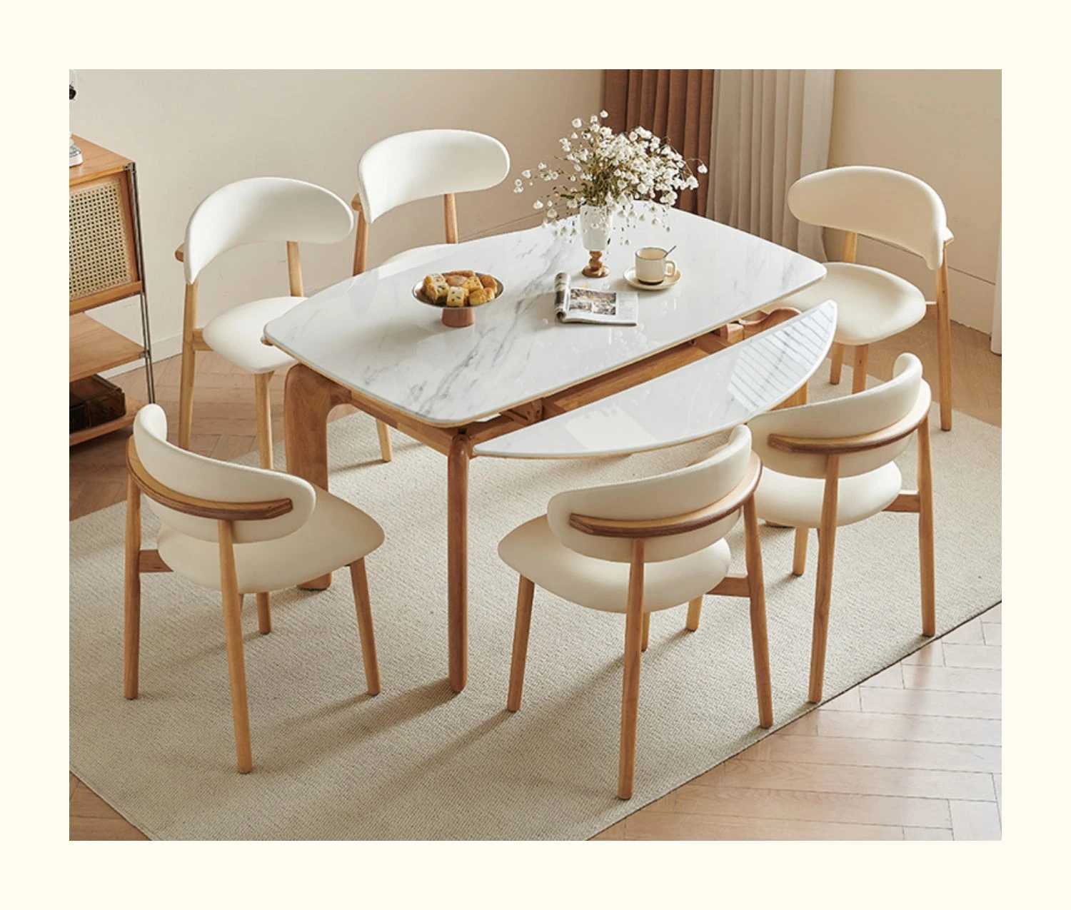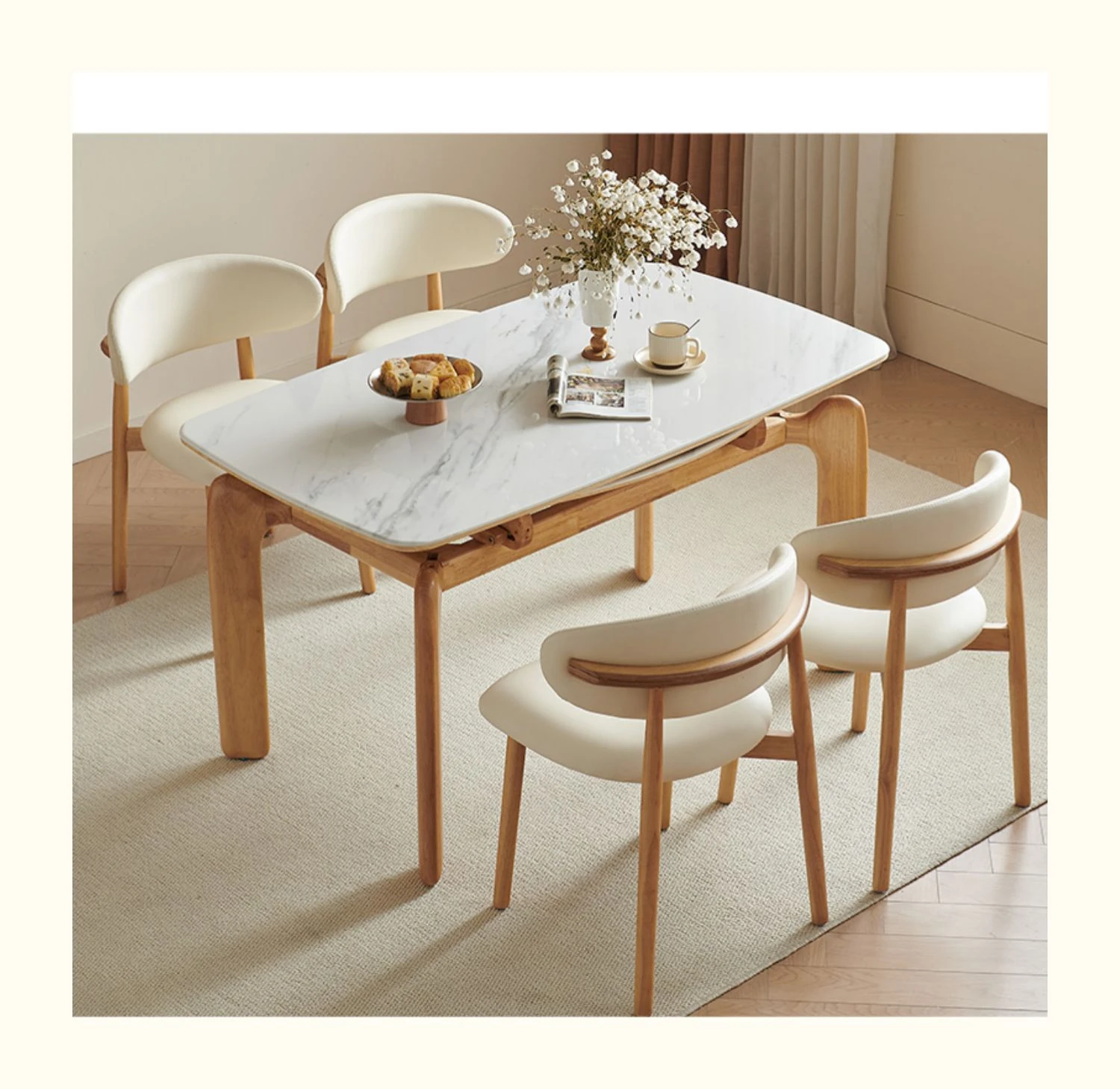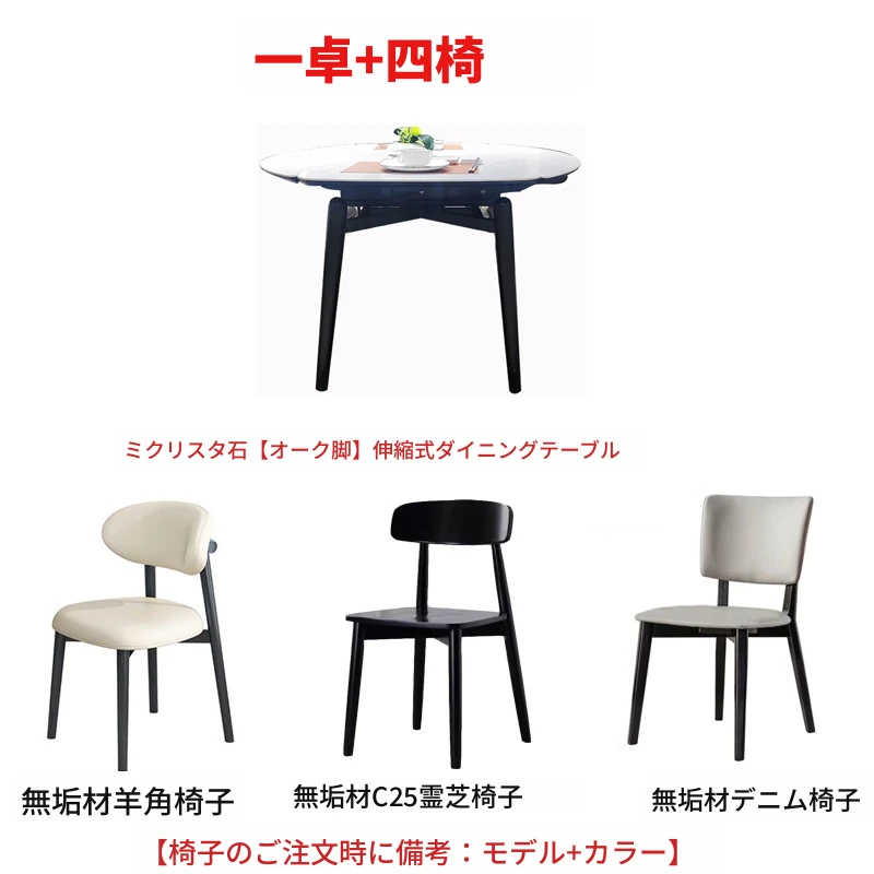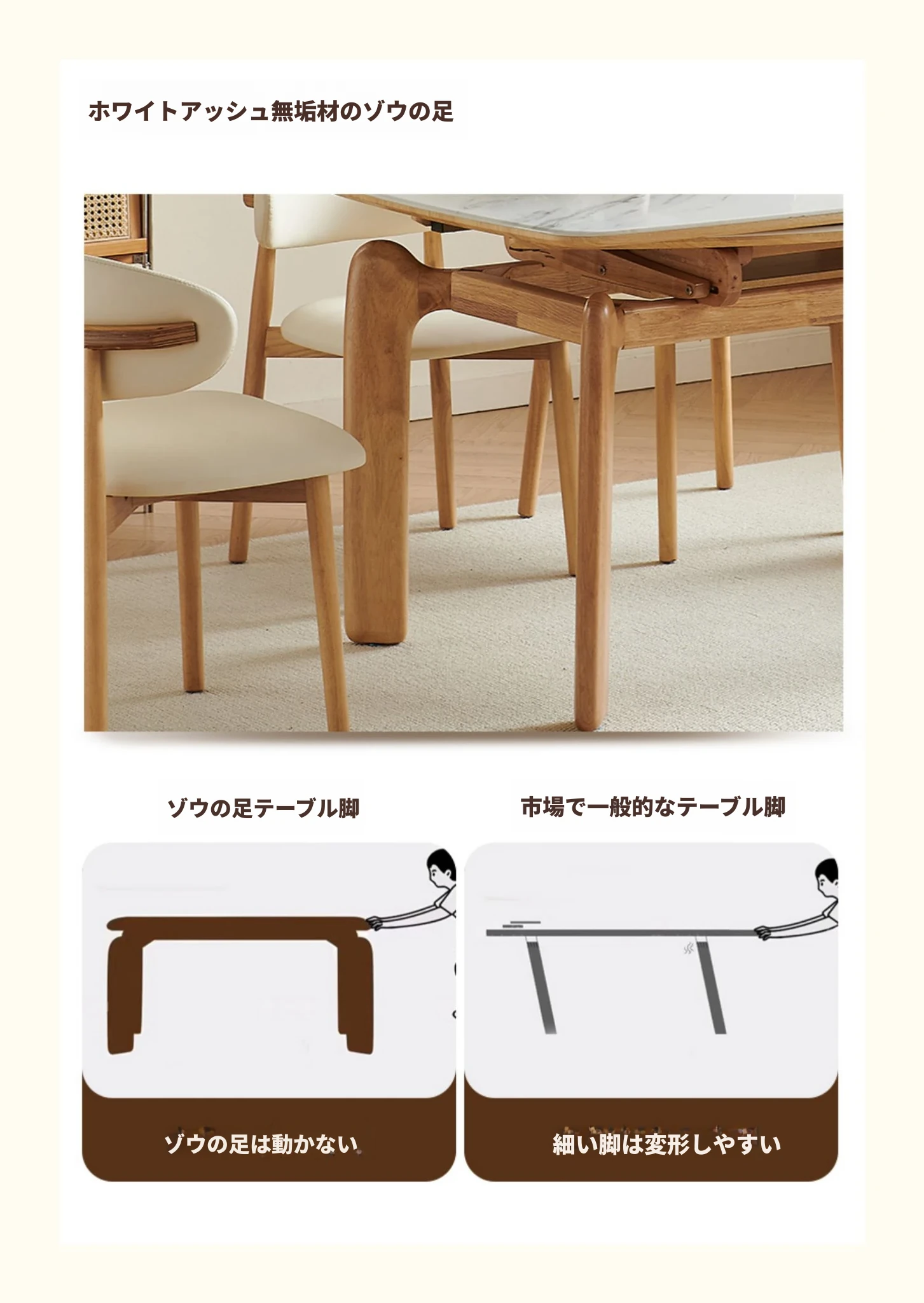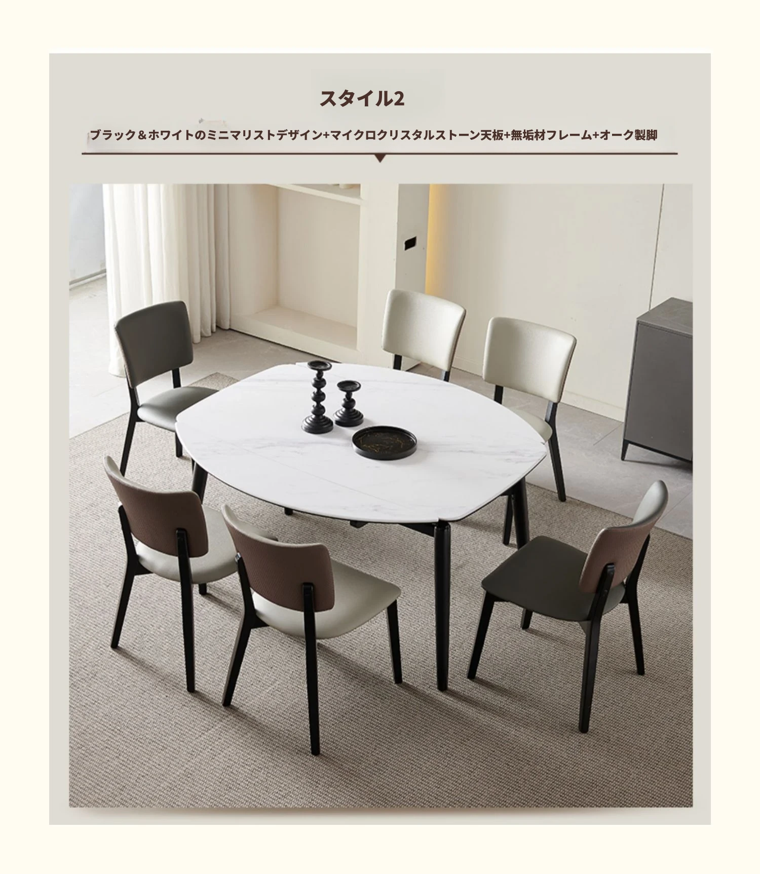 現代的なミニマリズム!折りたたみ式の微晶石ダイニングテーブル&チェアセット - 小さなスペースに最適な白アッシュ材使用。四角形と円形の2WAYデザインで、家族や友人との食事をスタイリッシュに楽しめます!