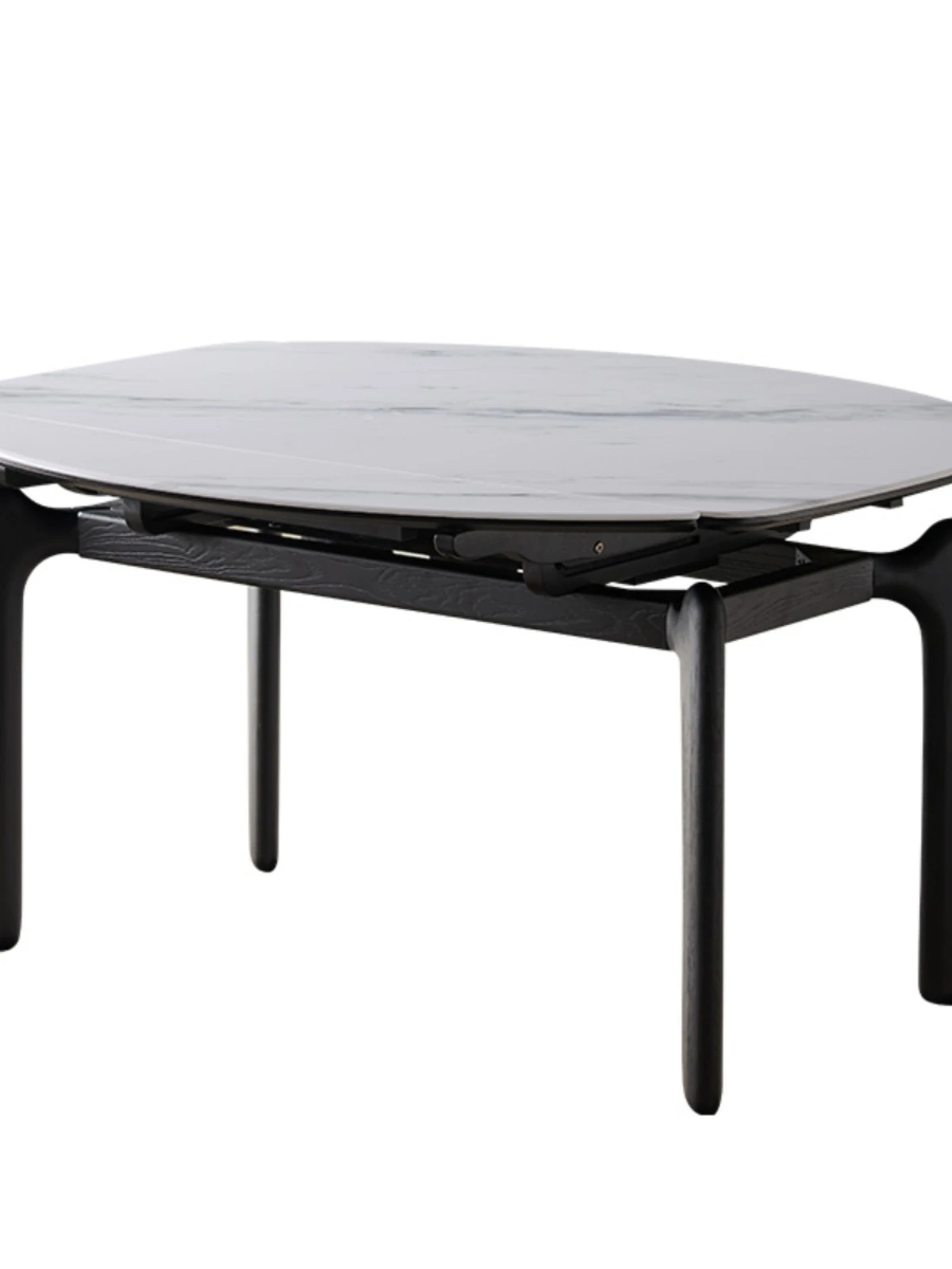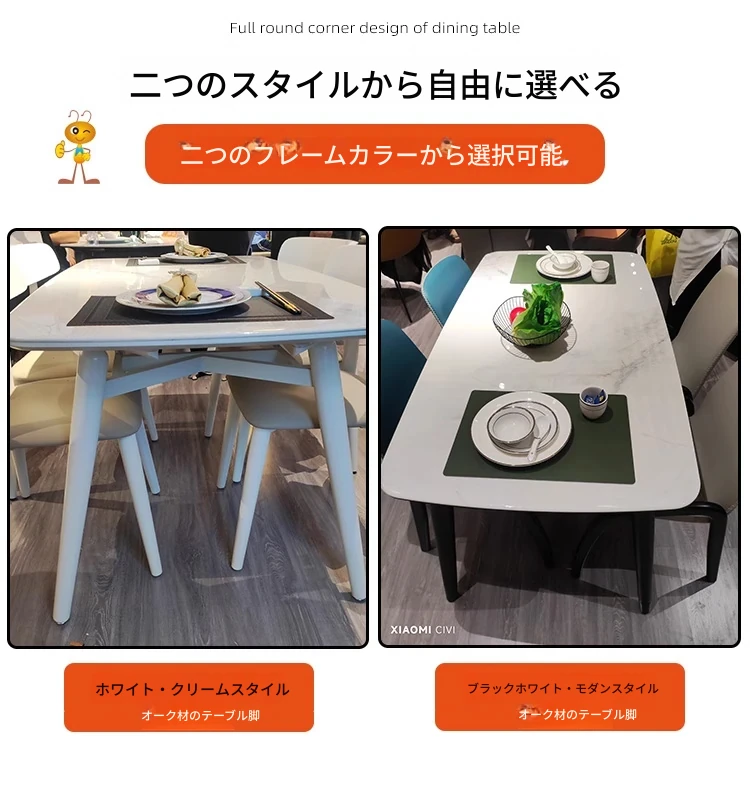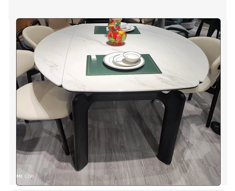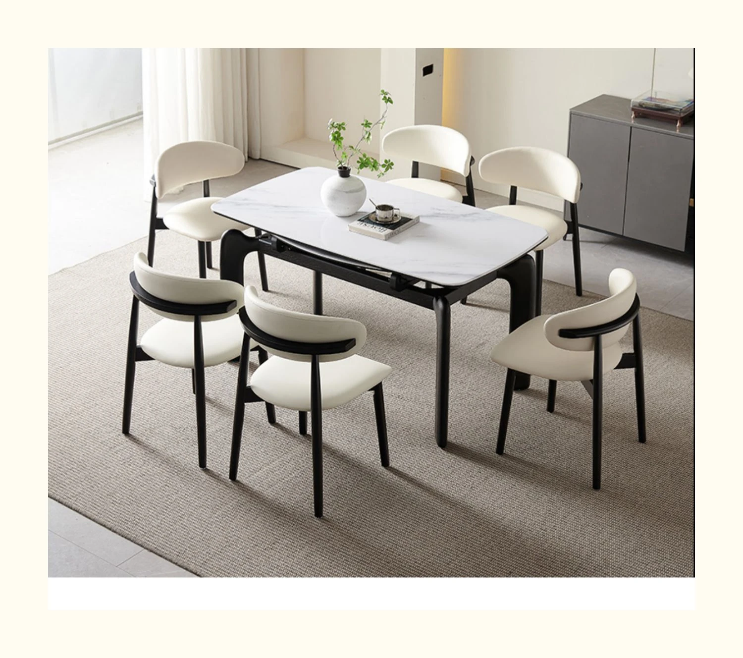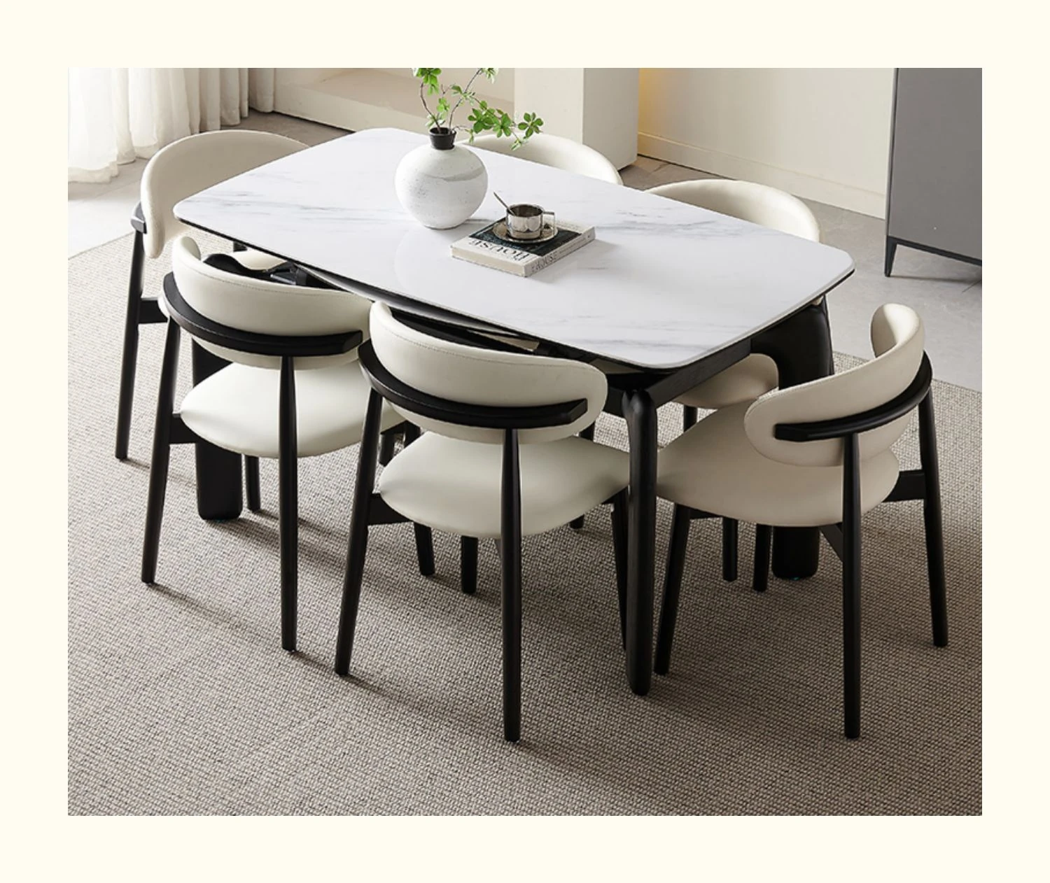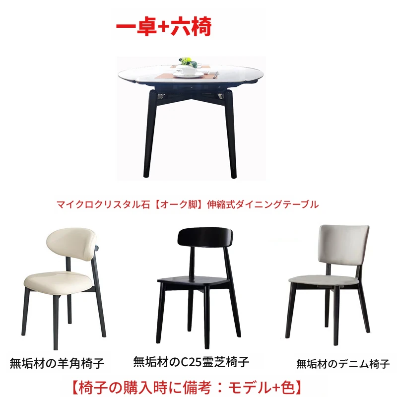 現代的なミニマリズム!折りたたみ式の微晶石ダイニングテーブル&チェアセット - 小さなスペースに最適な白アッシュ材使用。四角形と円形の2WAYデザインで、家族や友人との食事をスタイリッシュに楽しめます!