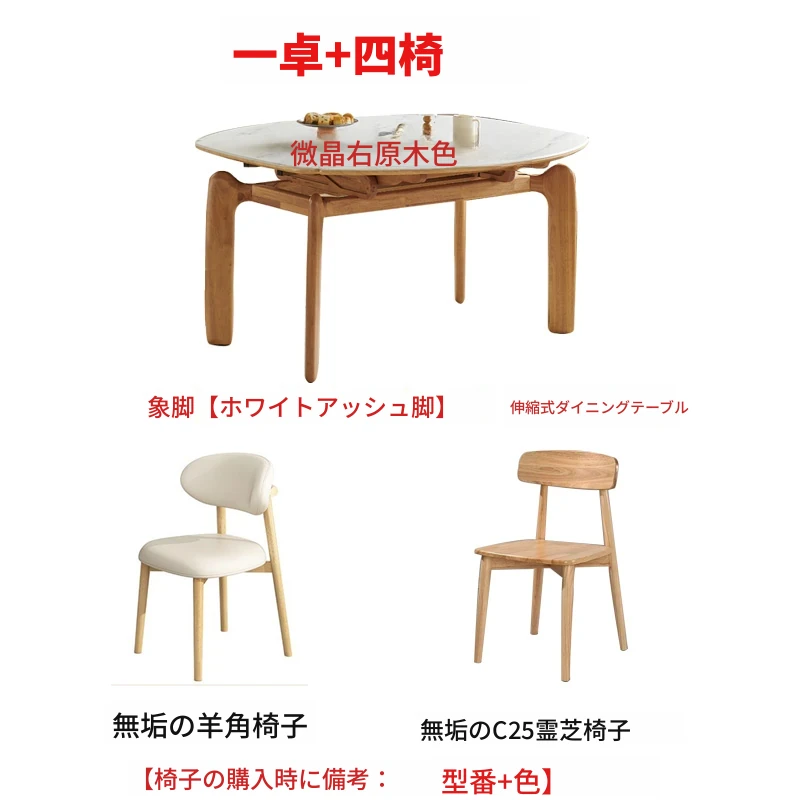 一卓四椅子【無垢椅子】ナチュラルカラーのホワイトアッシュテーブル脚