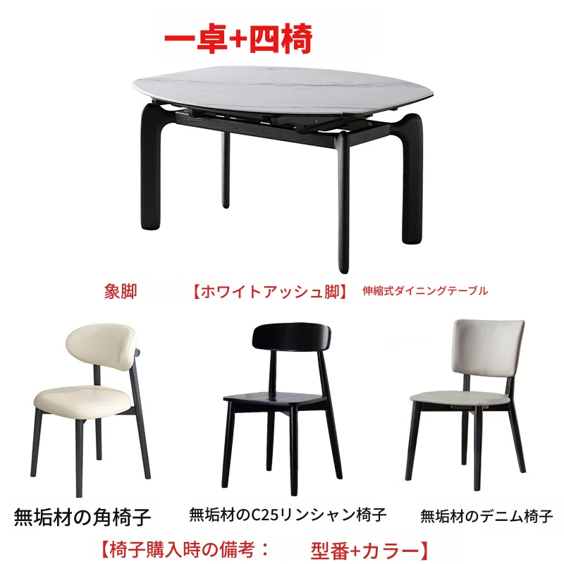 一卓四椅子【無垢椅子】ホワイトアッシュテーブル脚