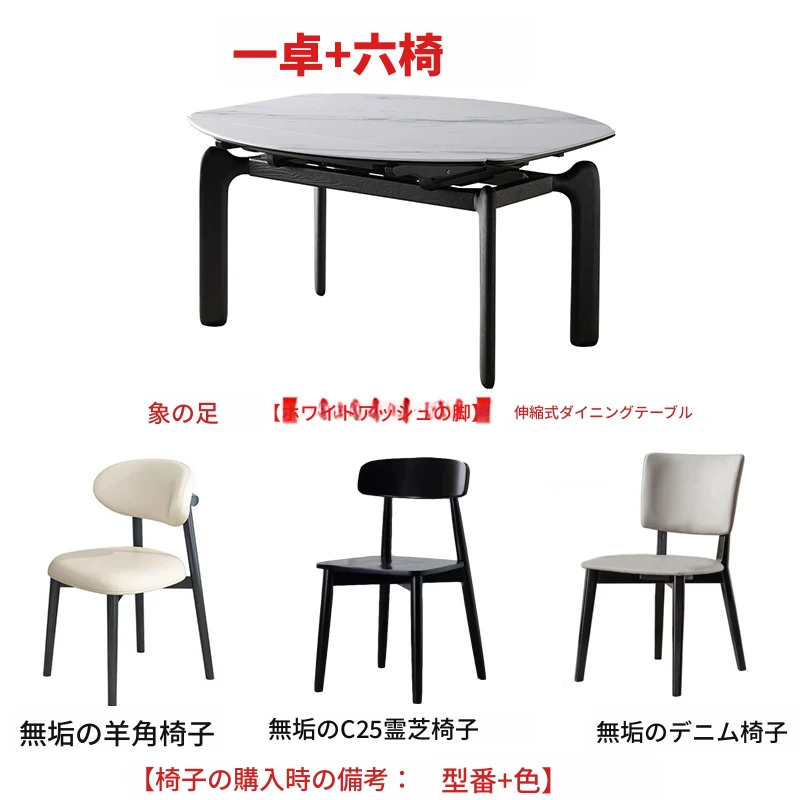 一卓六椅子【無垢椅子】ホワイトアッシュテーブル脚