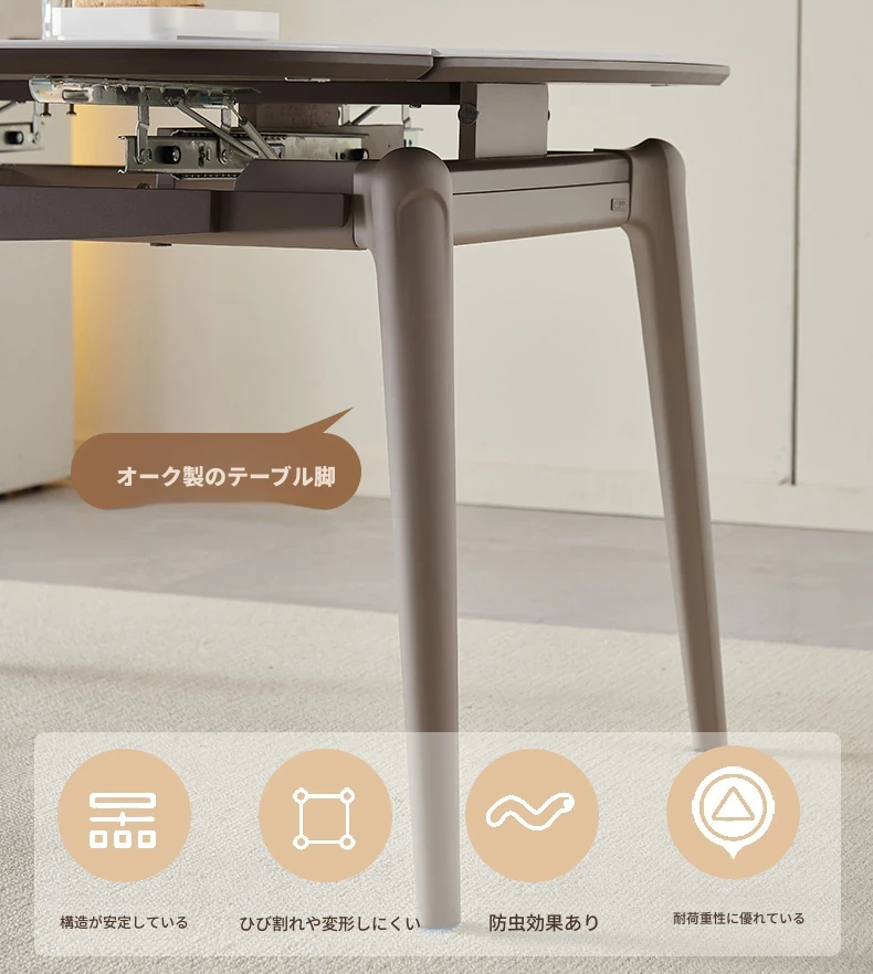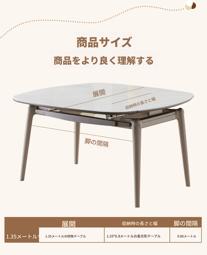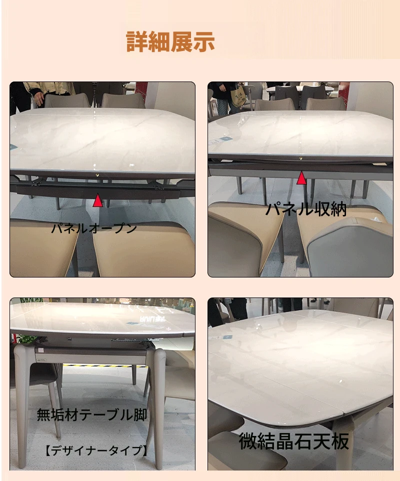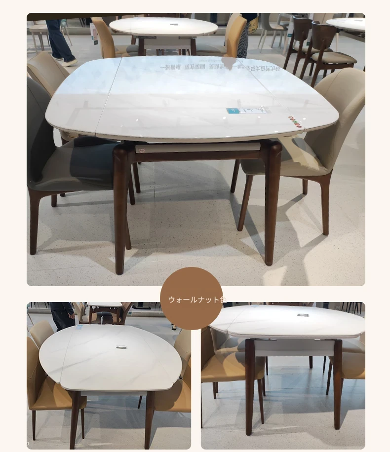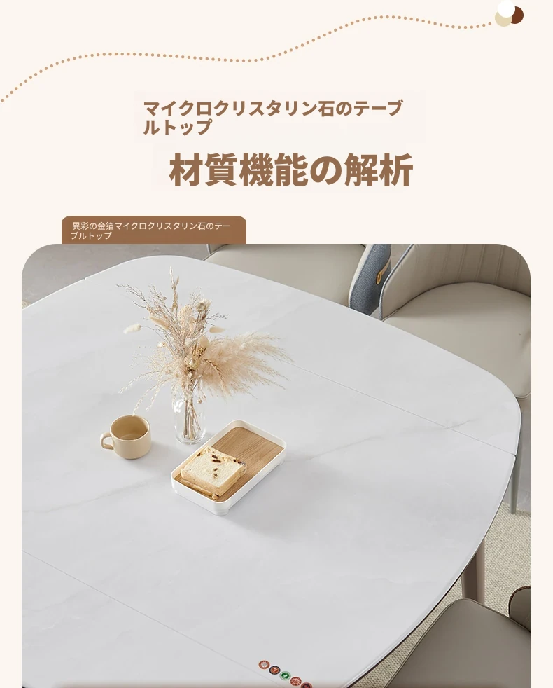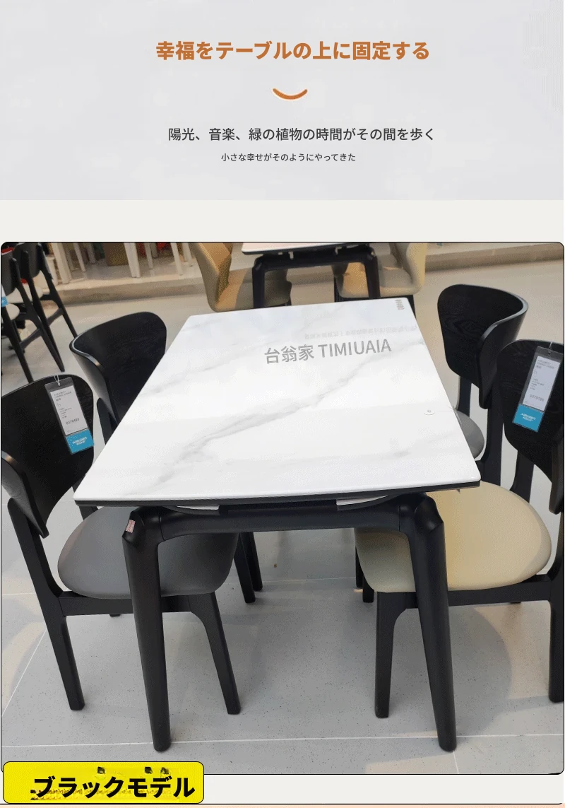 モダンでシンプルな折りたたみ式イタリアンスタイルのマイクロクリスタルストーンテーブルセット - 伸縮可能な四角形ダイニングテーブルとチェアのコンビネーション、軽やかなラグジュアリーを感じる家族用食卓。