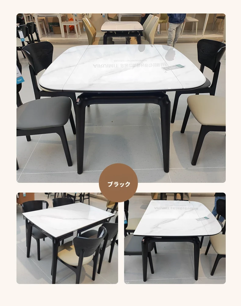 ミクロクリスタル石【1.35メートル黒】一卓六椅子