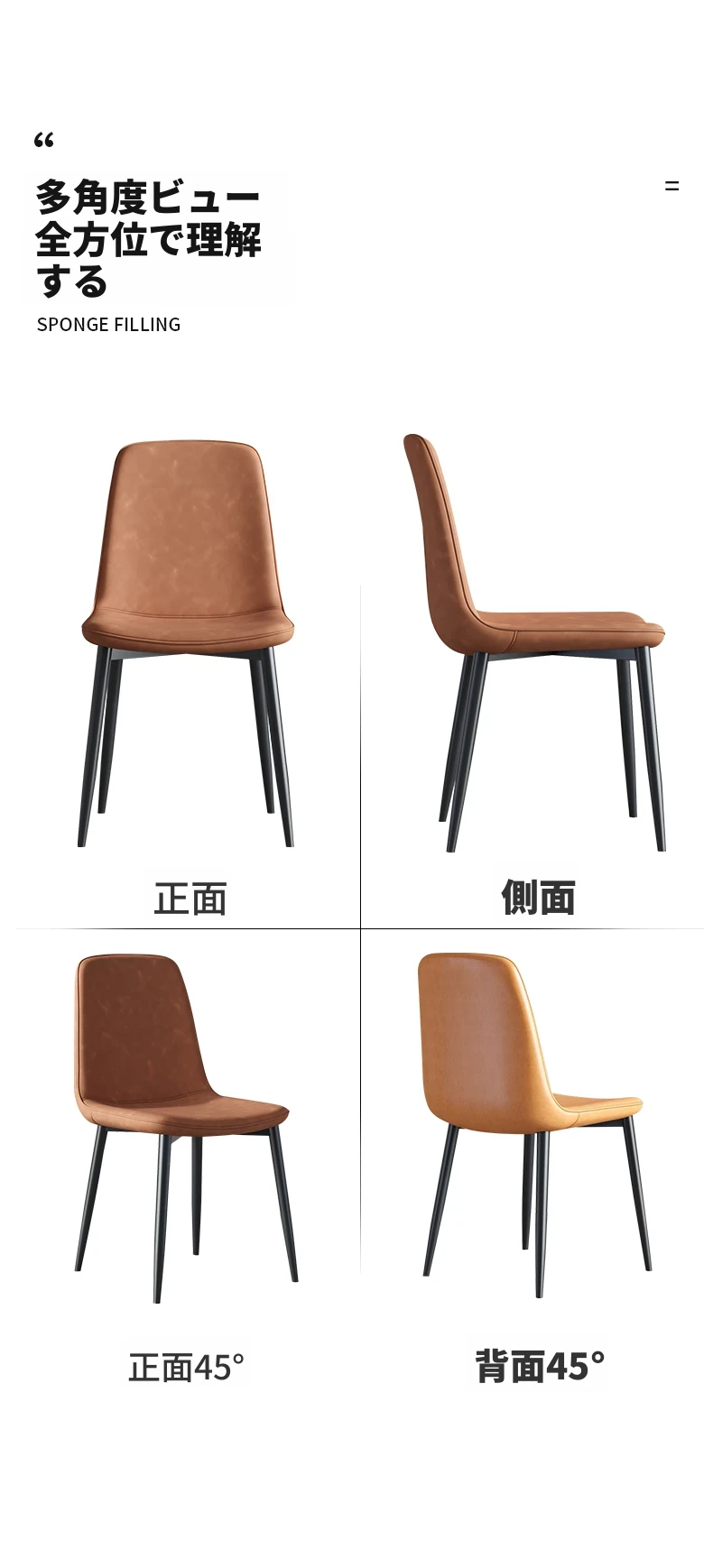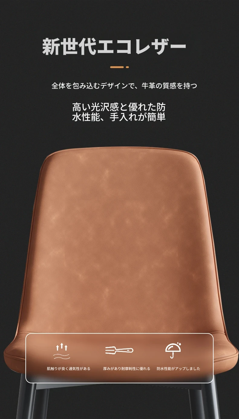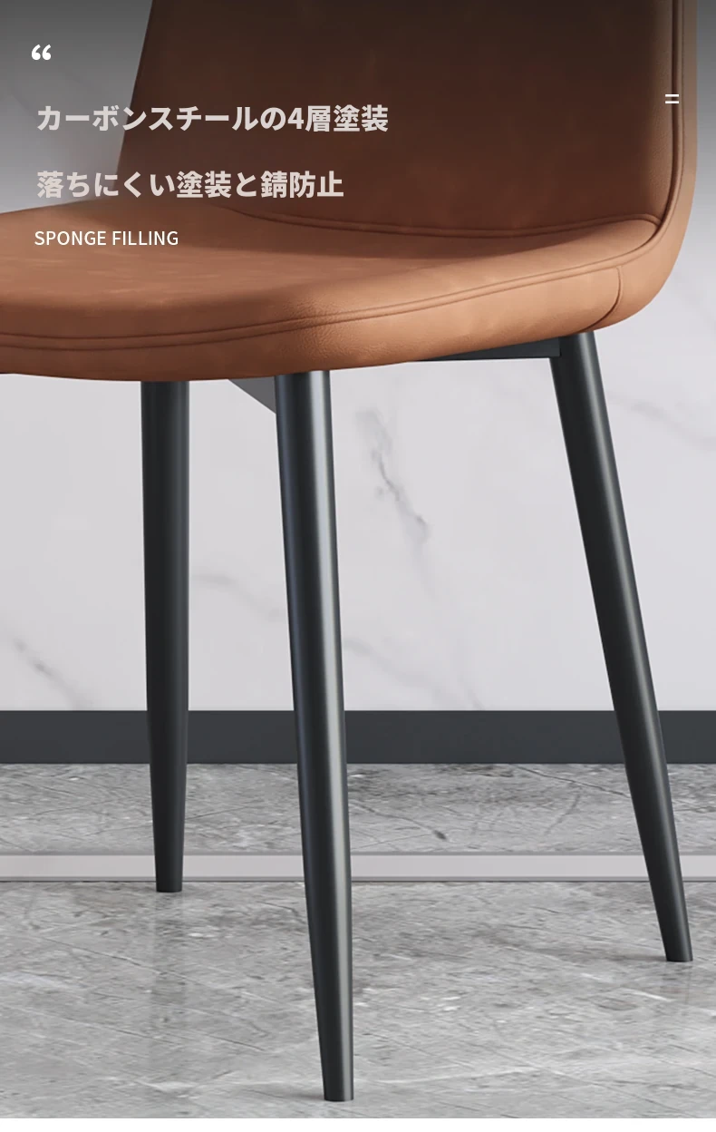 厚手皮革-ライトブラウン-スプーンチェア強化カーボンスチールフレーム