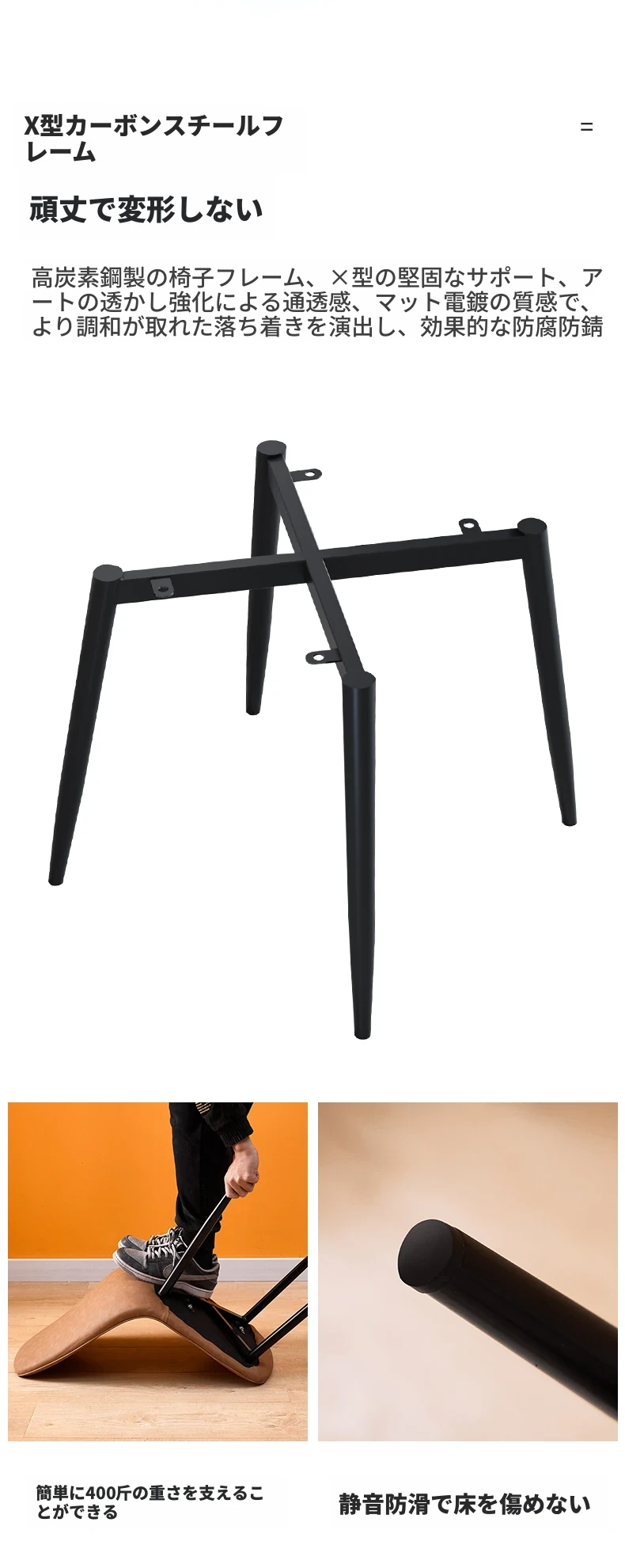 厚手皮革-全黒-スプーンチェア強化カーボンスチールフレーム