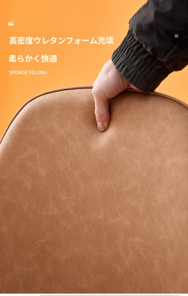 厚手皮革-ライトコーヒー-スプーンチェア強化カーボンスチールフレーム