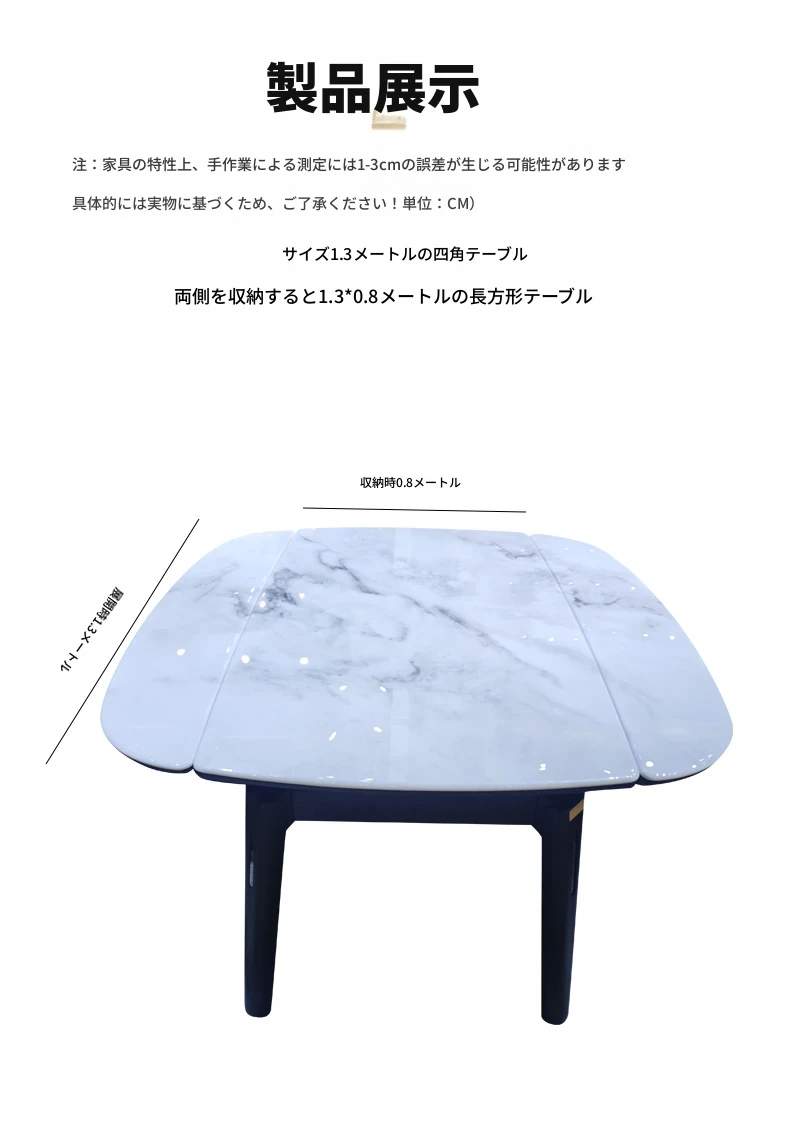 天然素材の高級石製ダイニングテーブルセット - 家庭用の可変型正方形伸縮折りたたみテーブル!実木製のコンパクトなデザインで、小さなスペースにもぴったり。スタイリッシュで機能的、どんなインテリアにも調和します!