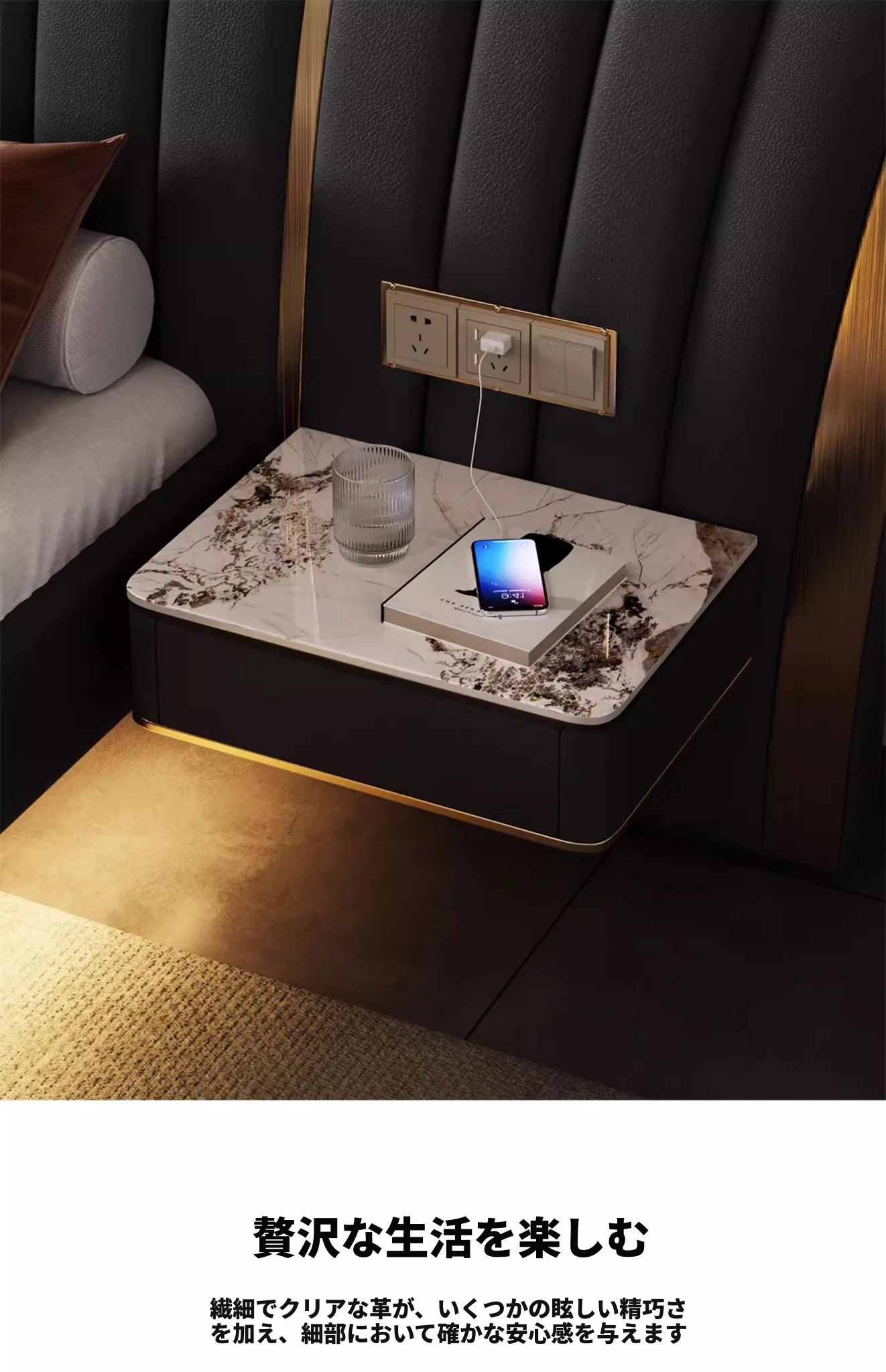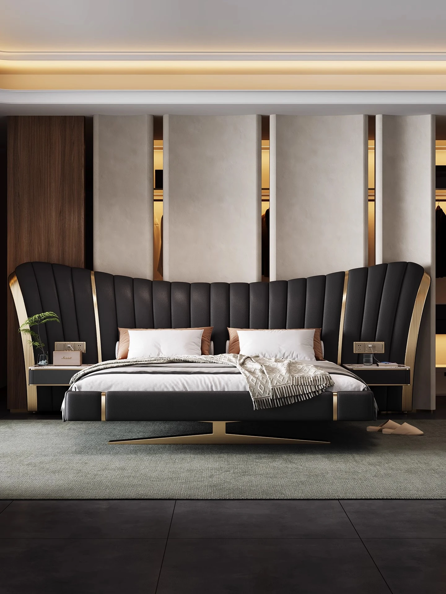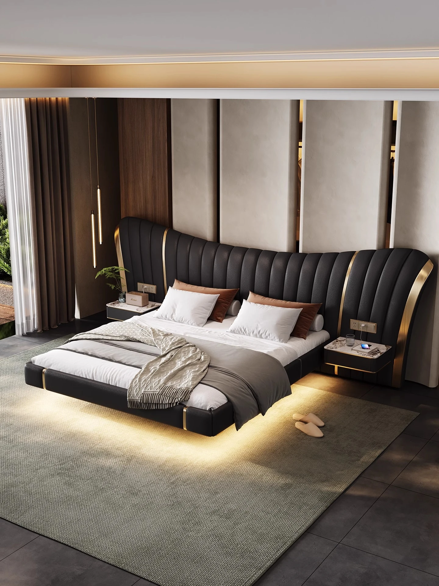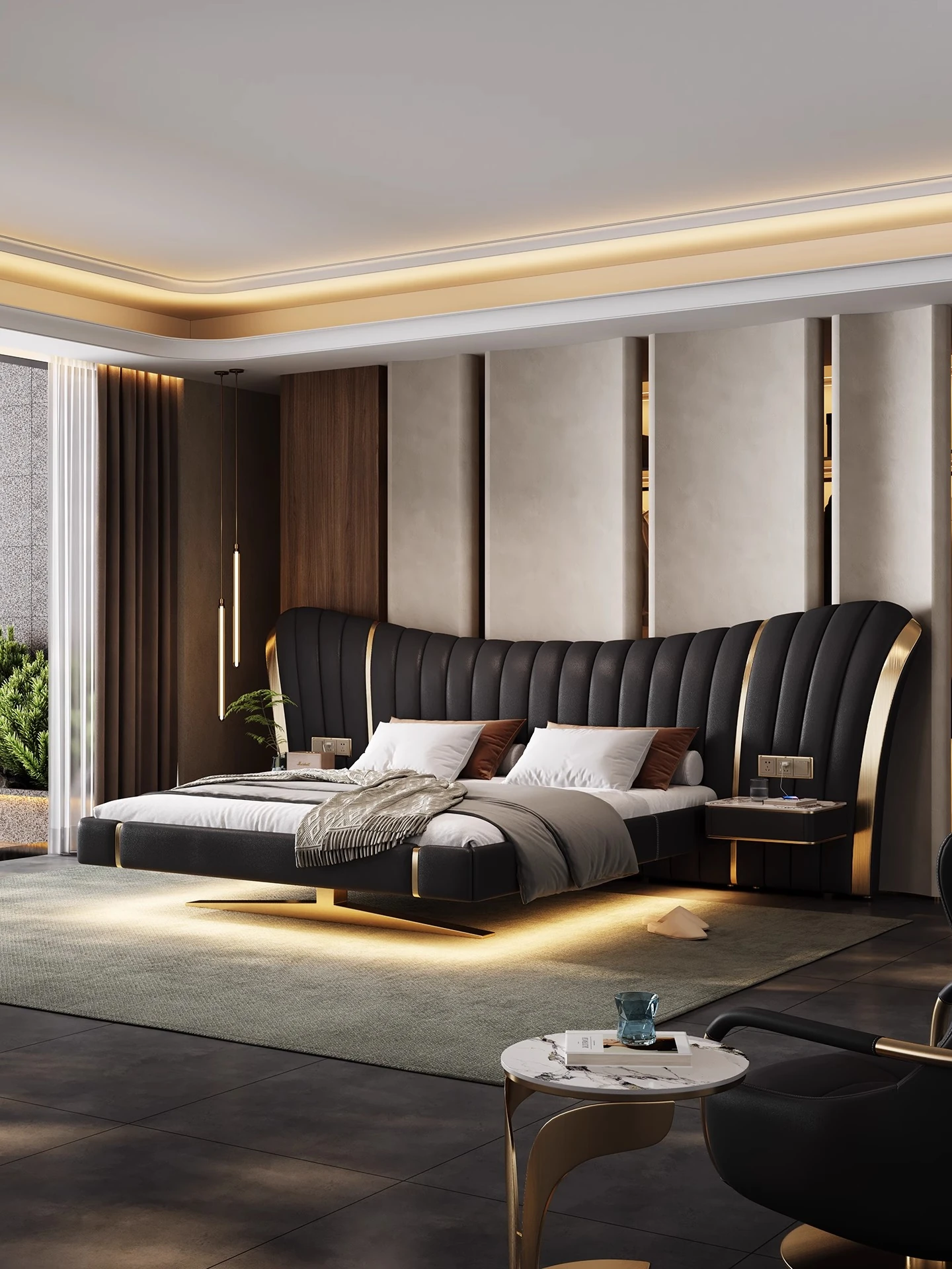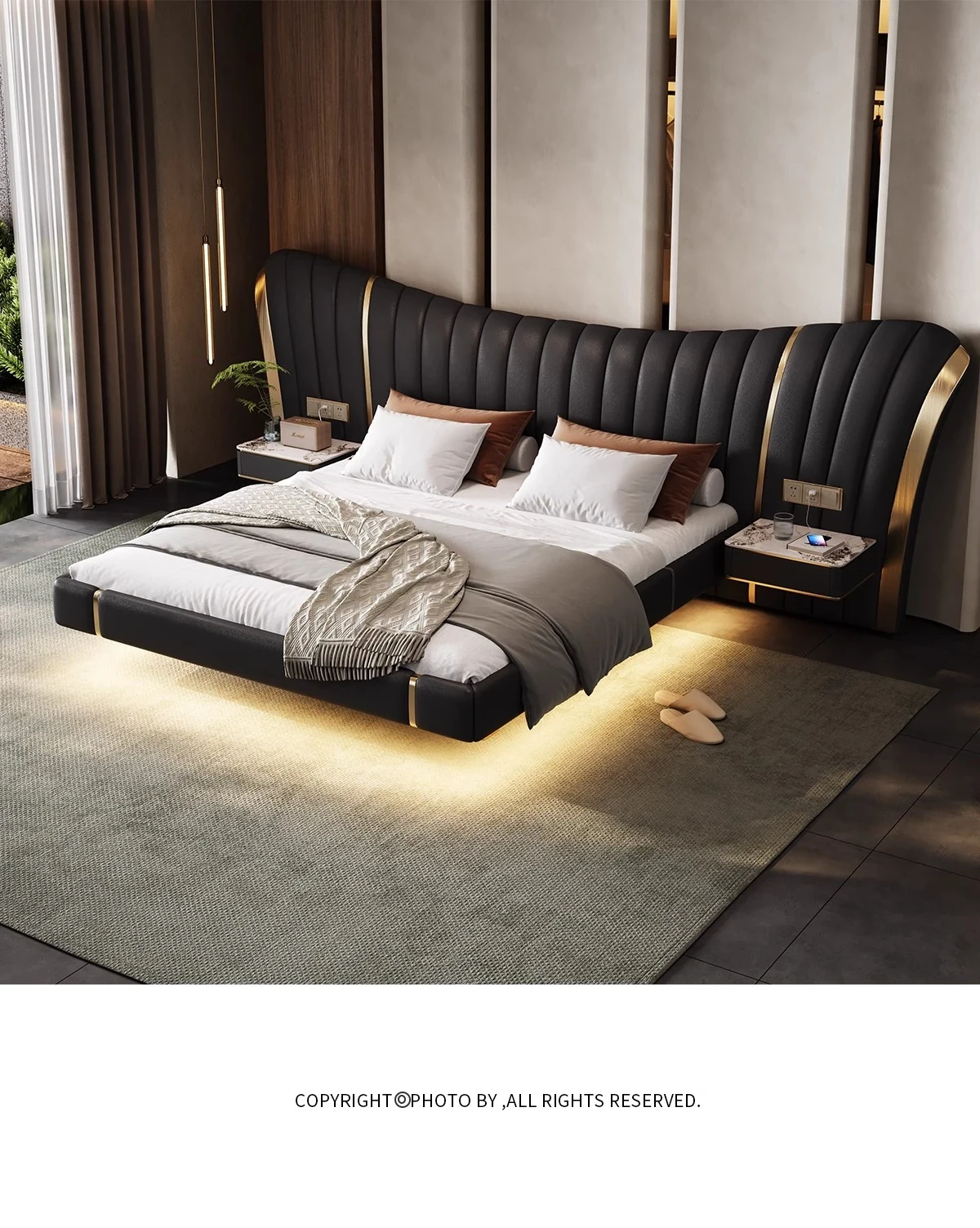 朴笙記のイタリアンレザー製軽奢華ベッド - モダンでシンプルなデザイン、1.8m主寝室用ダブルベッド、2mの収納スペース付き!快適でスタイリッシュな睡眠空間をお楽しみください。
