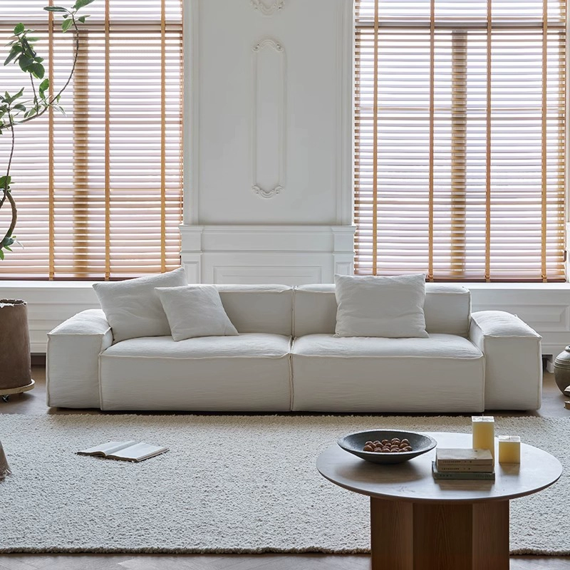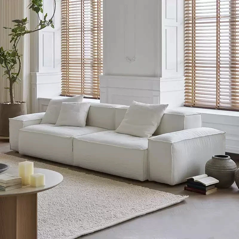 朴笙記の豆腐ブロックソファ - 天然コットンとリネン製、イタリアンミニマリズムの黒色、大型リビングに最適なモジュール式、ダウンフリルデザインで贅沢な座り心地を実現!