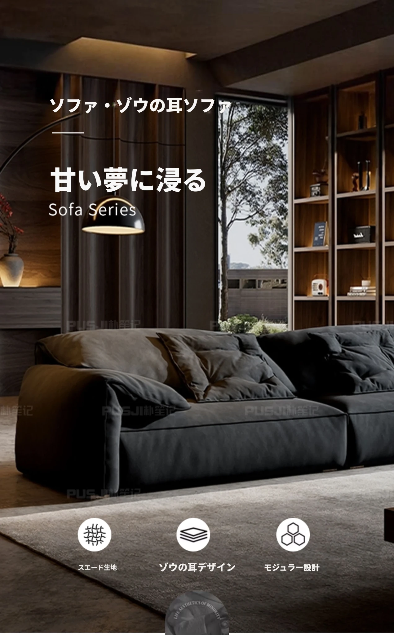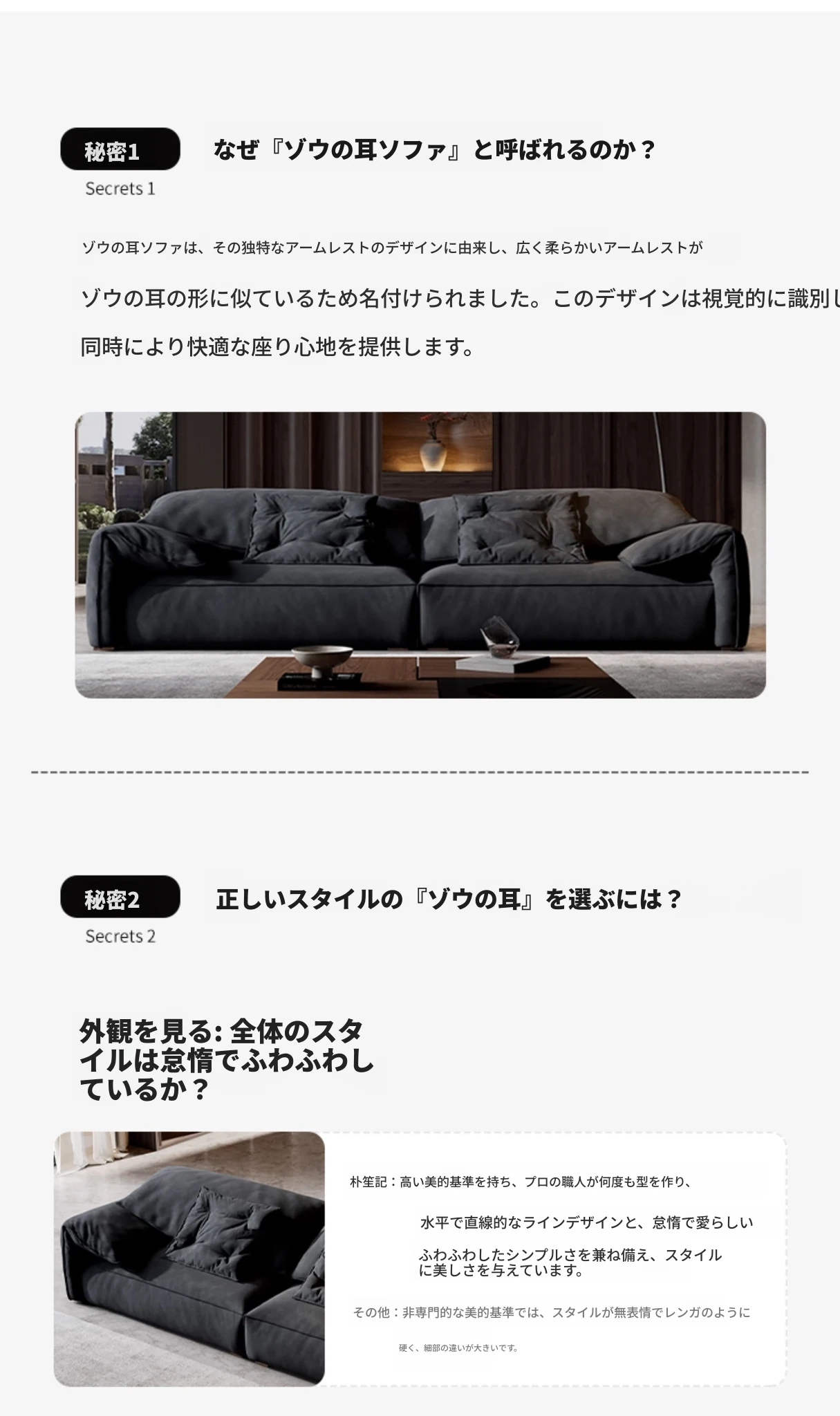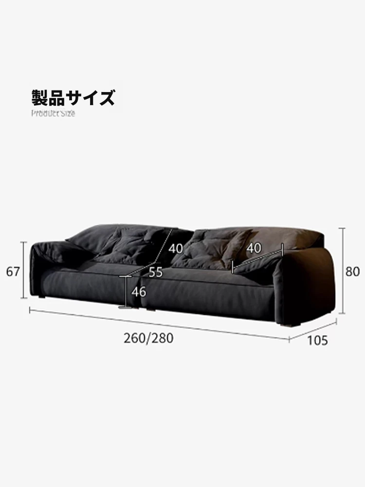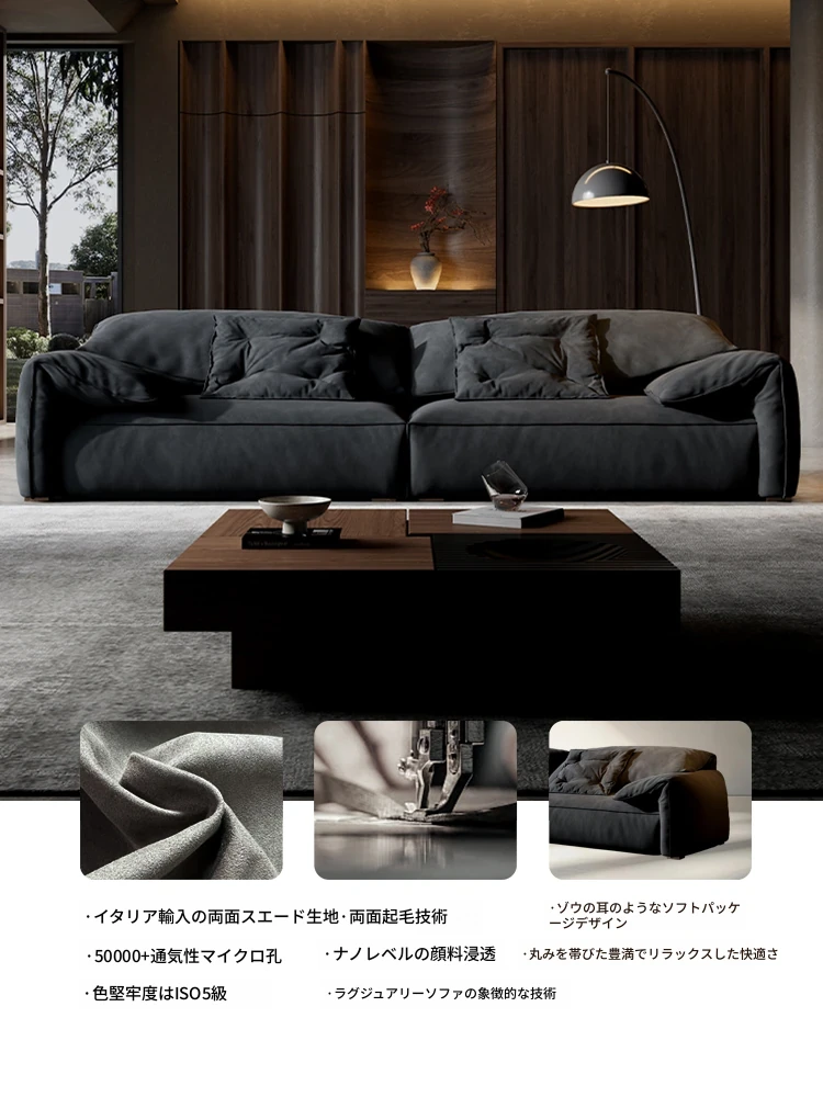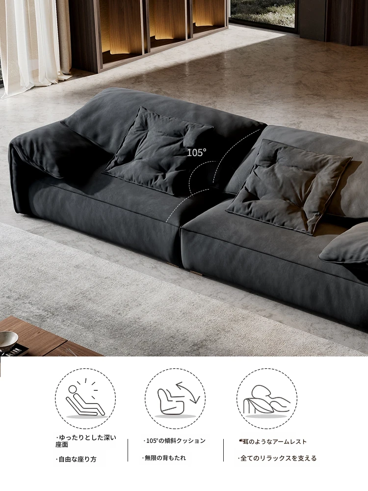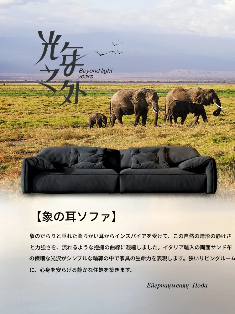 朴笙記オリジナル大象耳ソファー|マットな生地とイタリアンミニマルデザイン|黒色でスタイリッシュなリビングにぴったり|広いお部屋に最適なダウンクッション使用