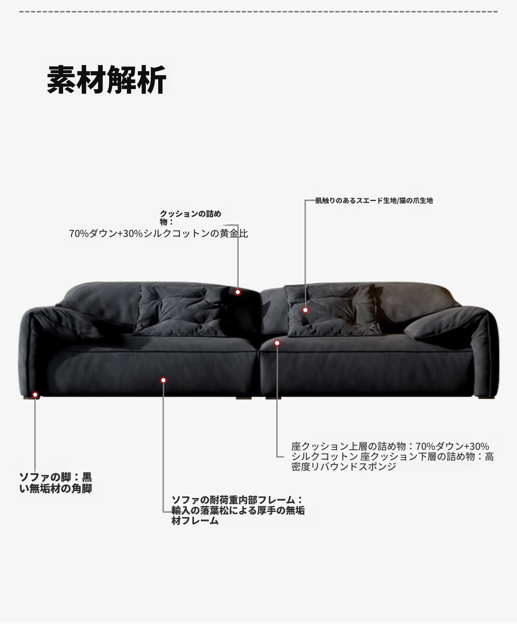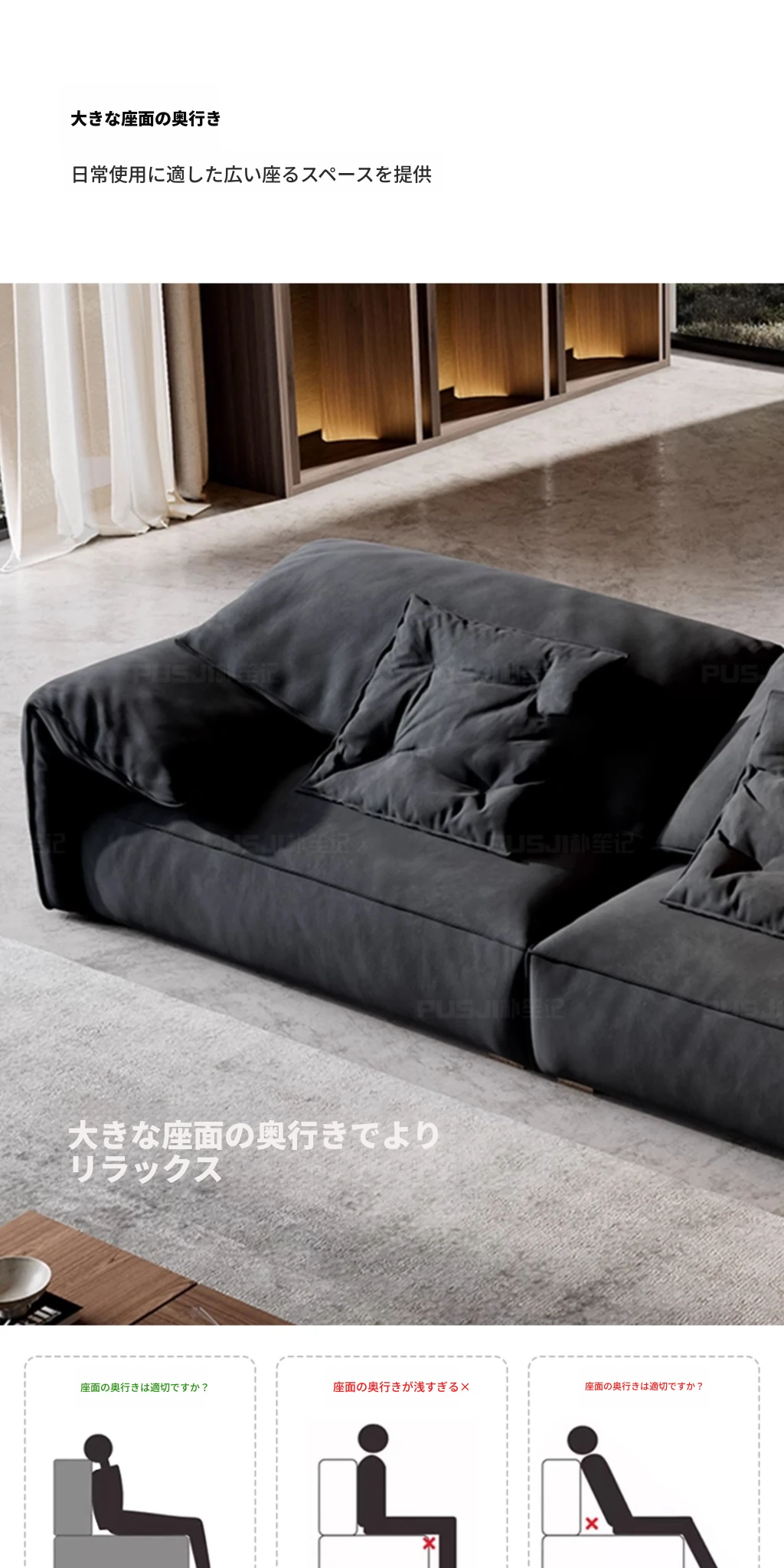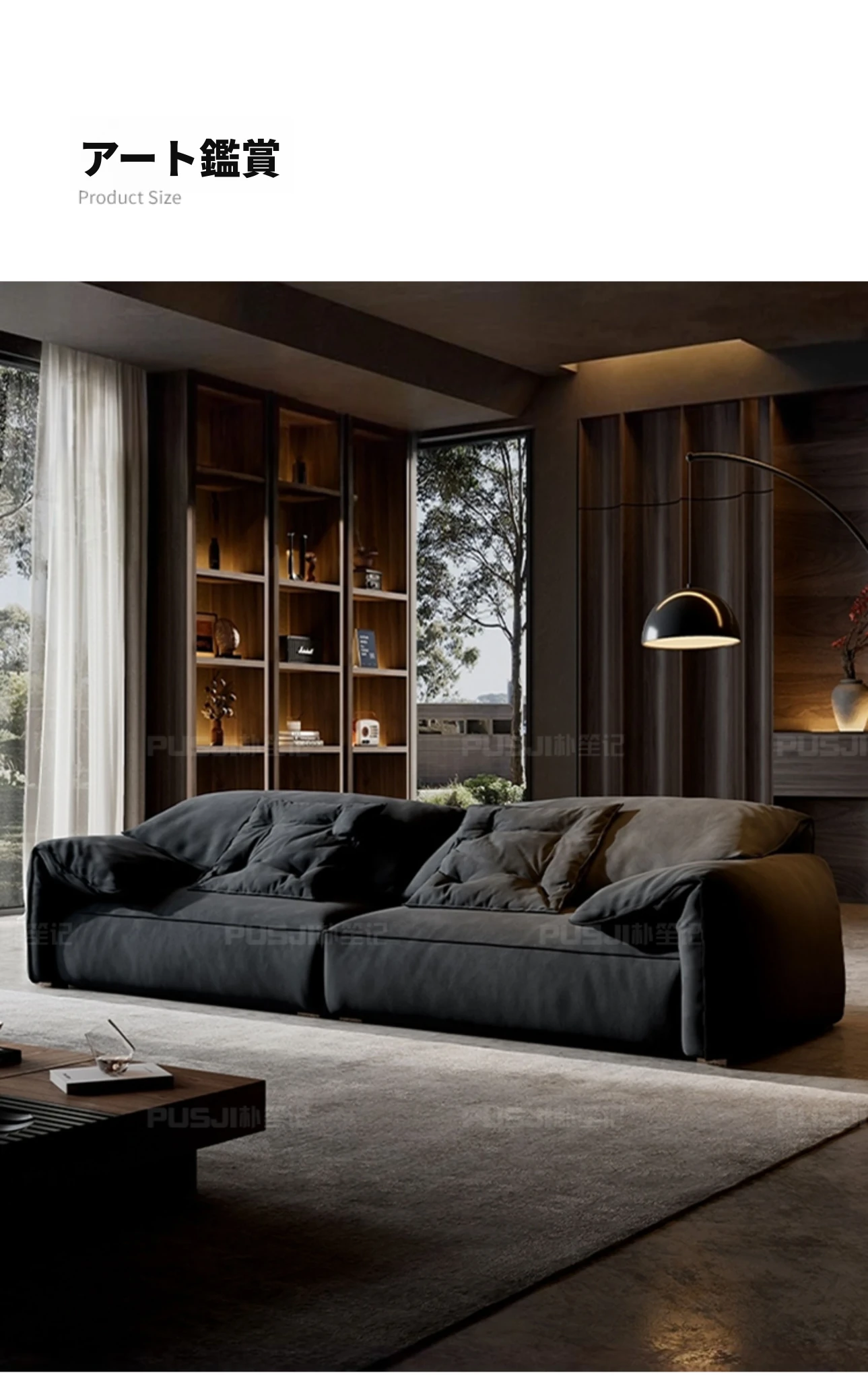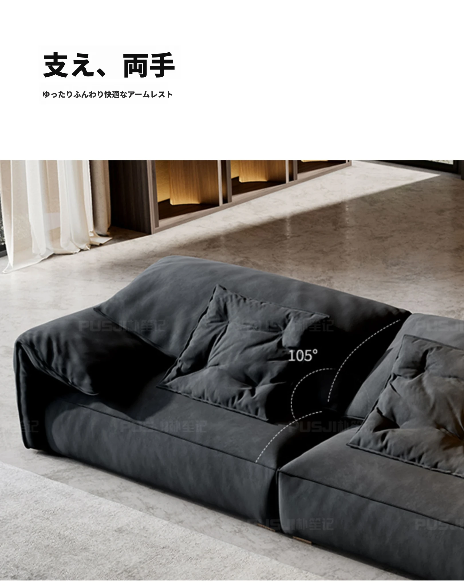 朴笙記オリジナル大象耳ソファー|マットな生地とイタリアンミニマルデザイン|黒色でスタイリッシュなリビングにぴったり|広いお部屋に最適なダウンクッション使用