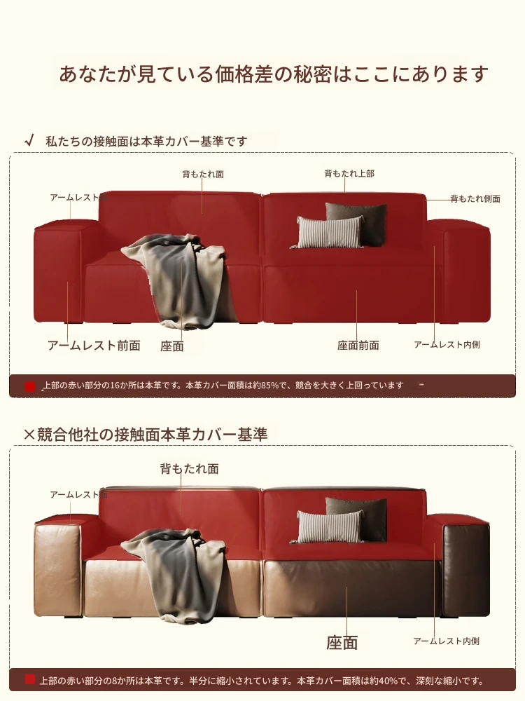 【フラッグシップ版1m幅】1.9m2人掛け-接触面1.8mm厚手小黄牛皮