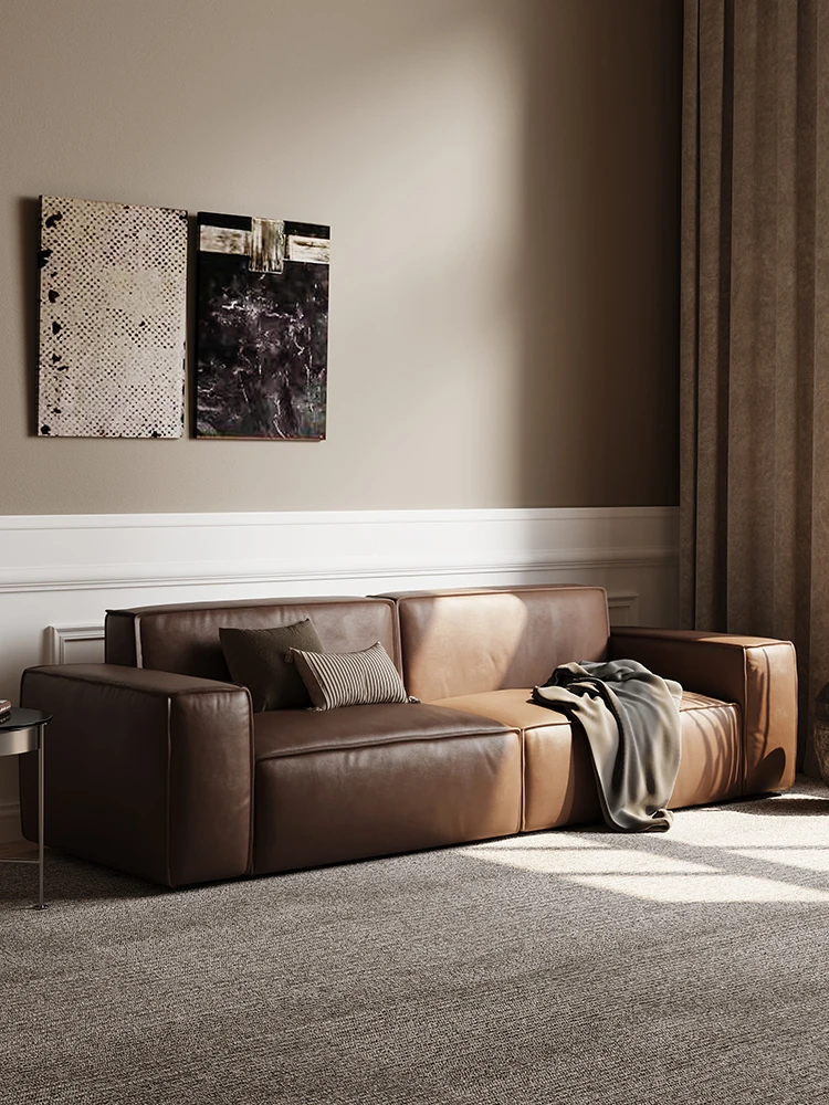 朴笙記 大黒牛 本革ソファー リビング用 一級牛革 ブラック イタリアンミニマル 豆腐ブロック デザイン 大型セットで快適な空間を演出!