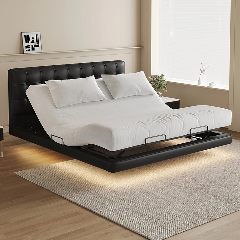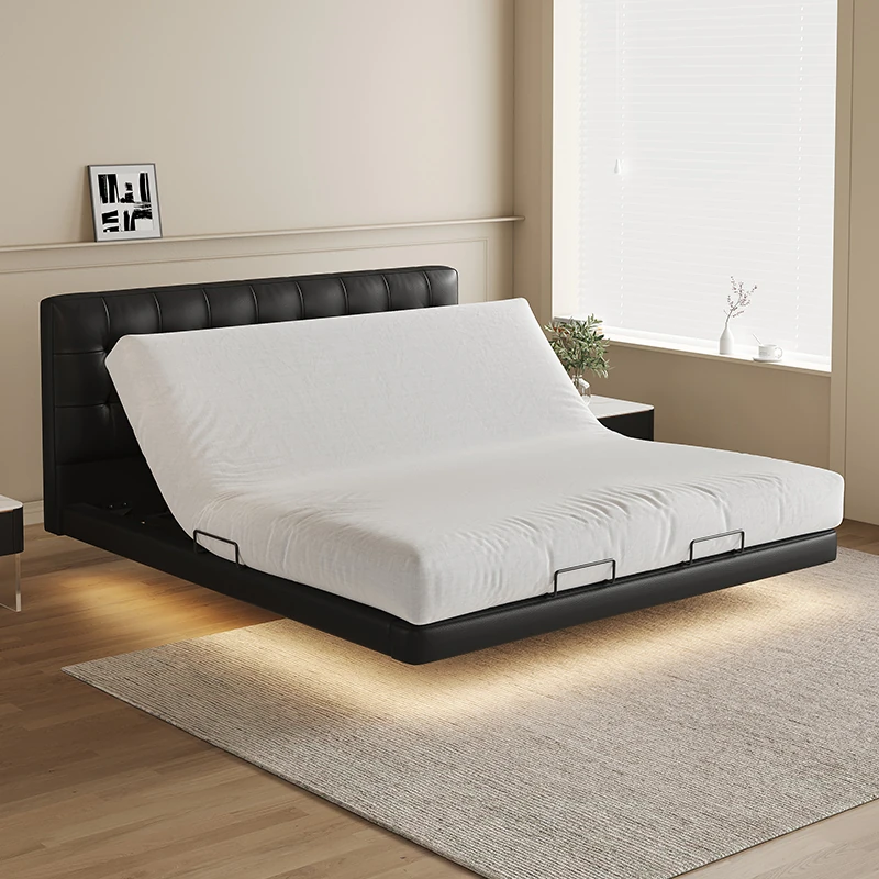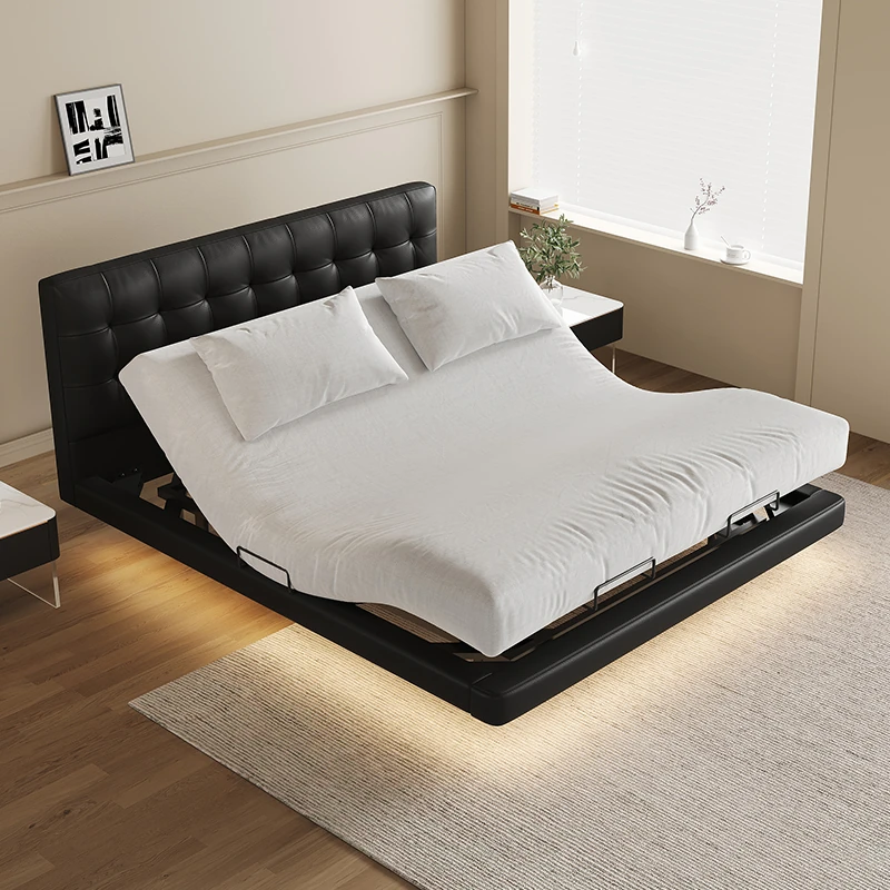 (トップグレード牛革ベッド)+(ドイツOKINフォーモーター)フル分体ベッドフレーム+(AI)スプリングラテックスマットレス