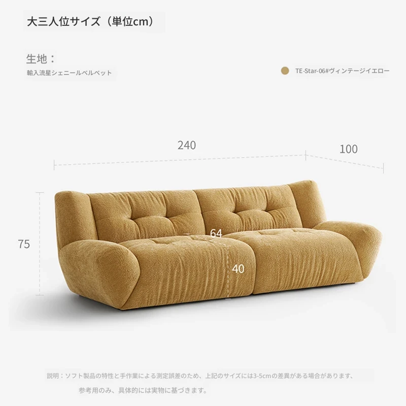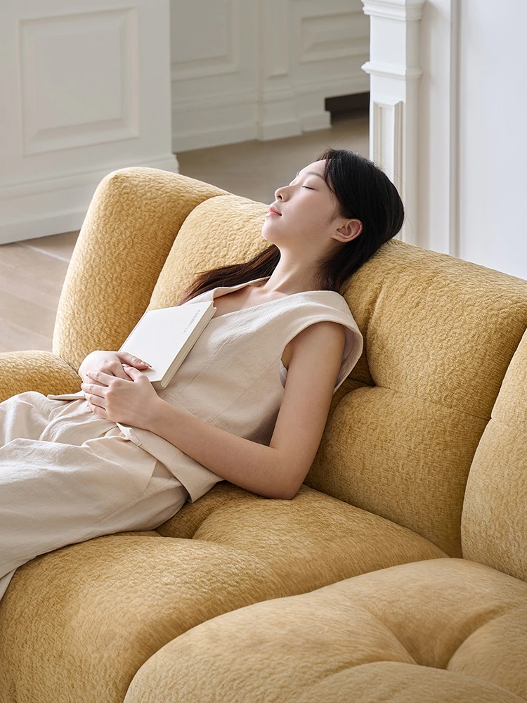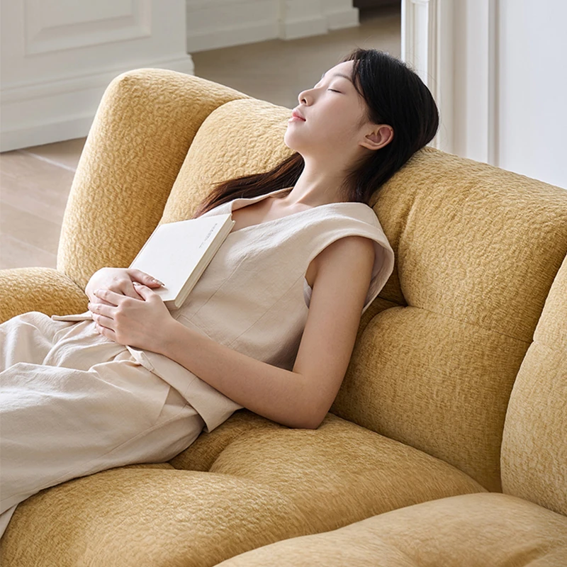 パフシン記 雲のようなソファ フランス風レトロクリームカラー 布製ソファ 寝室・リビング・別荘に最適なリラックスソファで、優雅なひとときをお楽しみください。