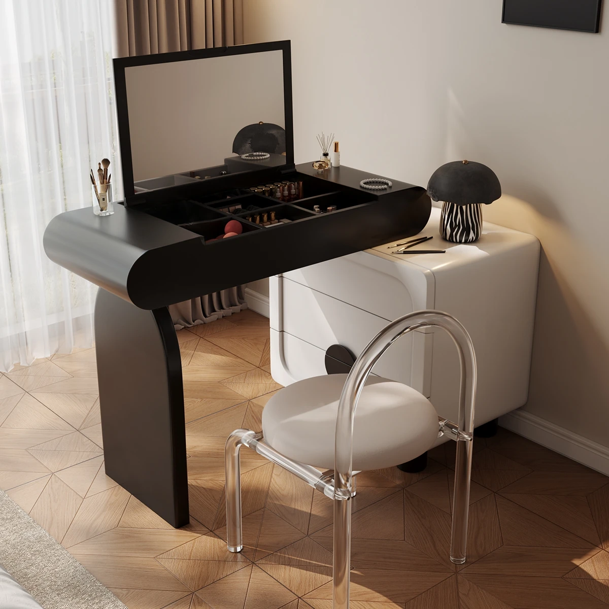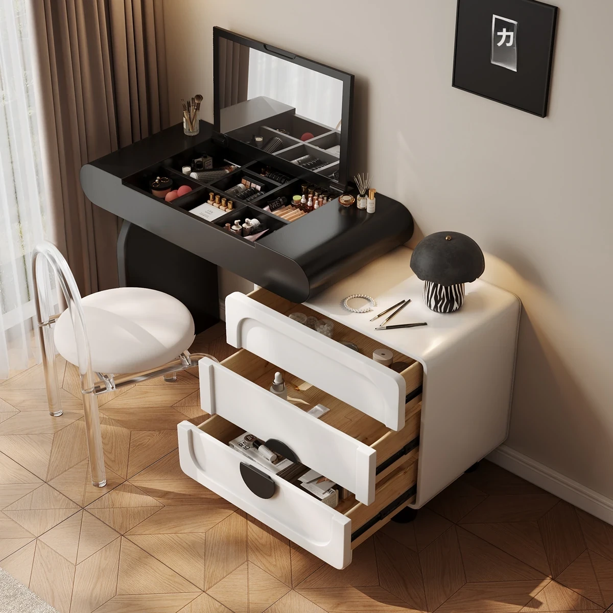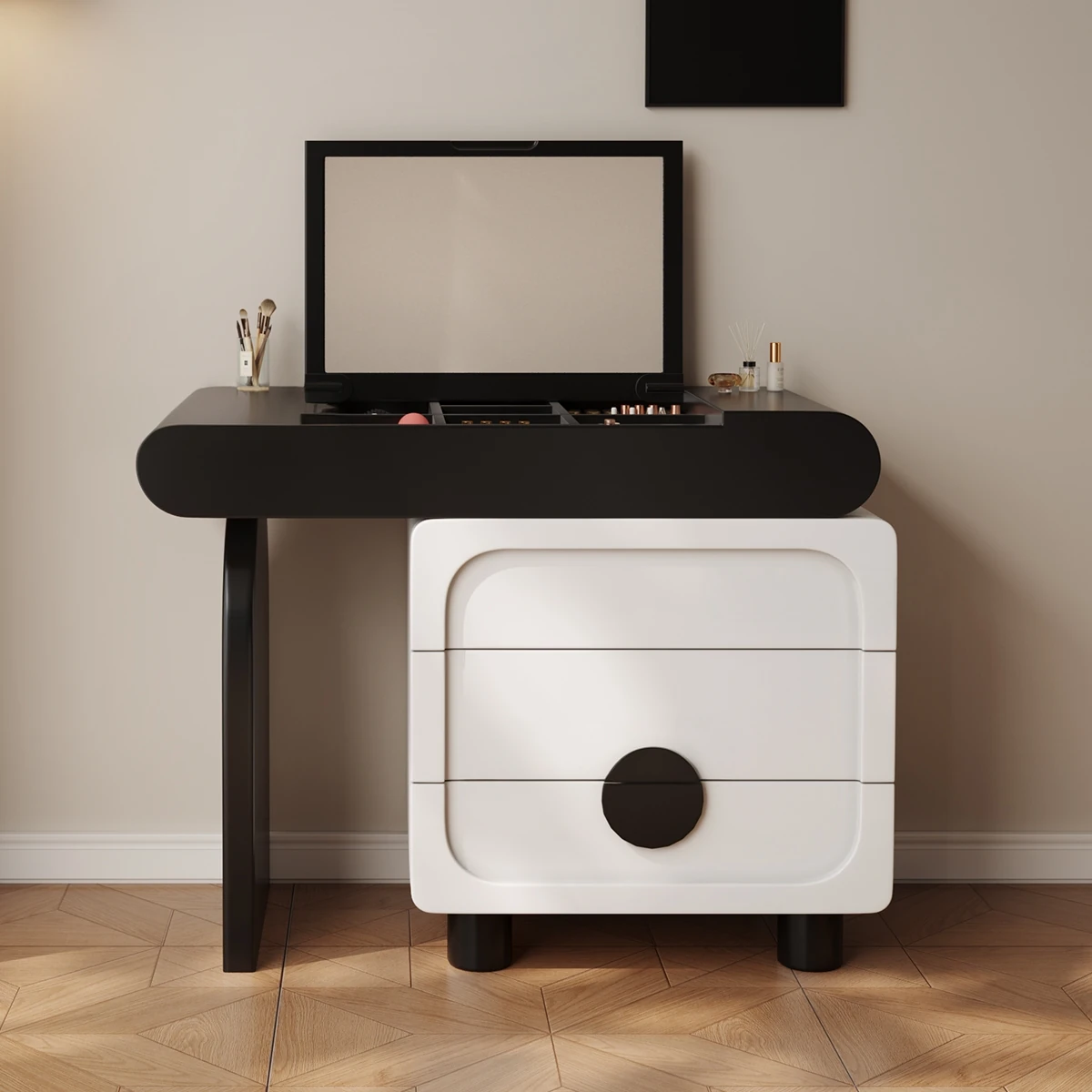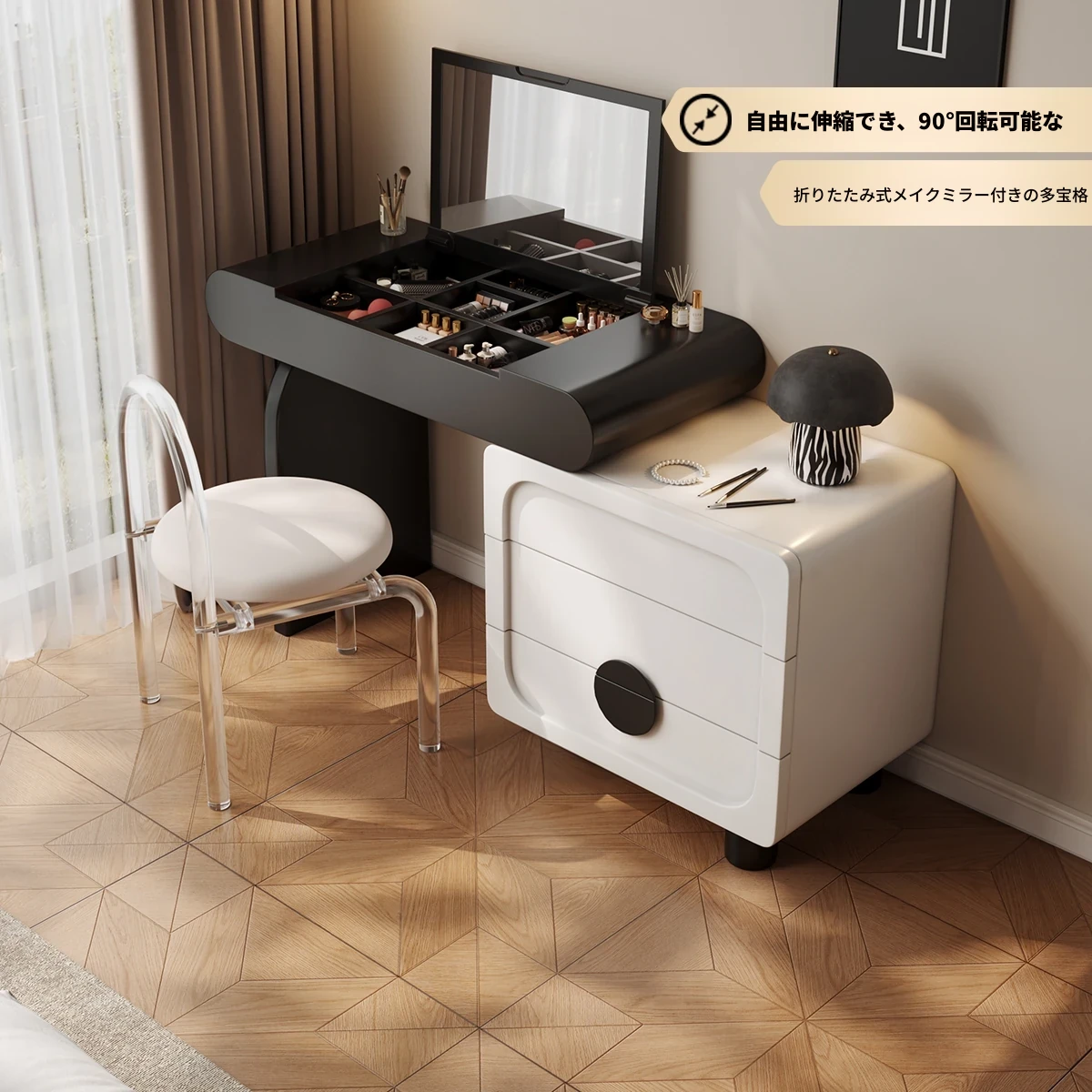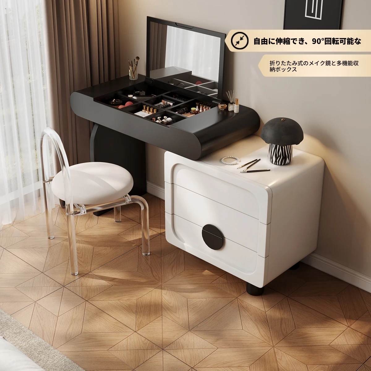 朴笙記パンダドレッサー一体型チェスト付き寝室家具 – レトロスタイルの無垢材小型フリップトップ化粧台で、おしゃれで機能的な空間を演出!