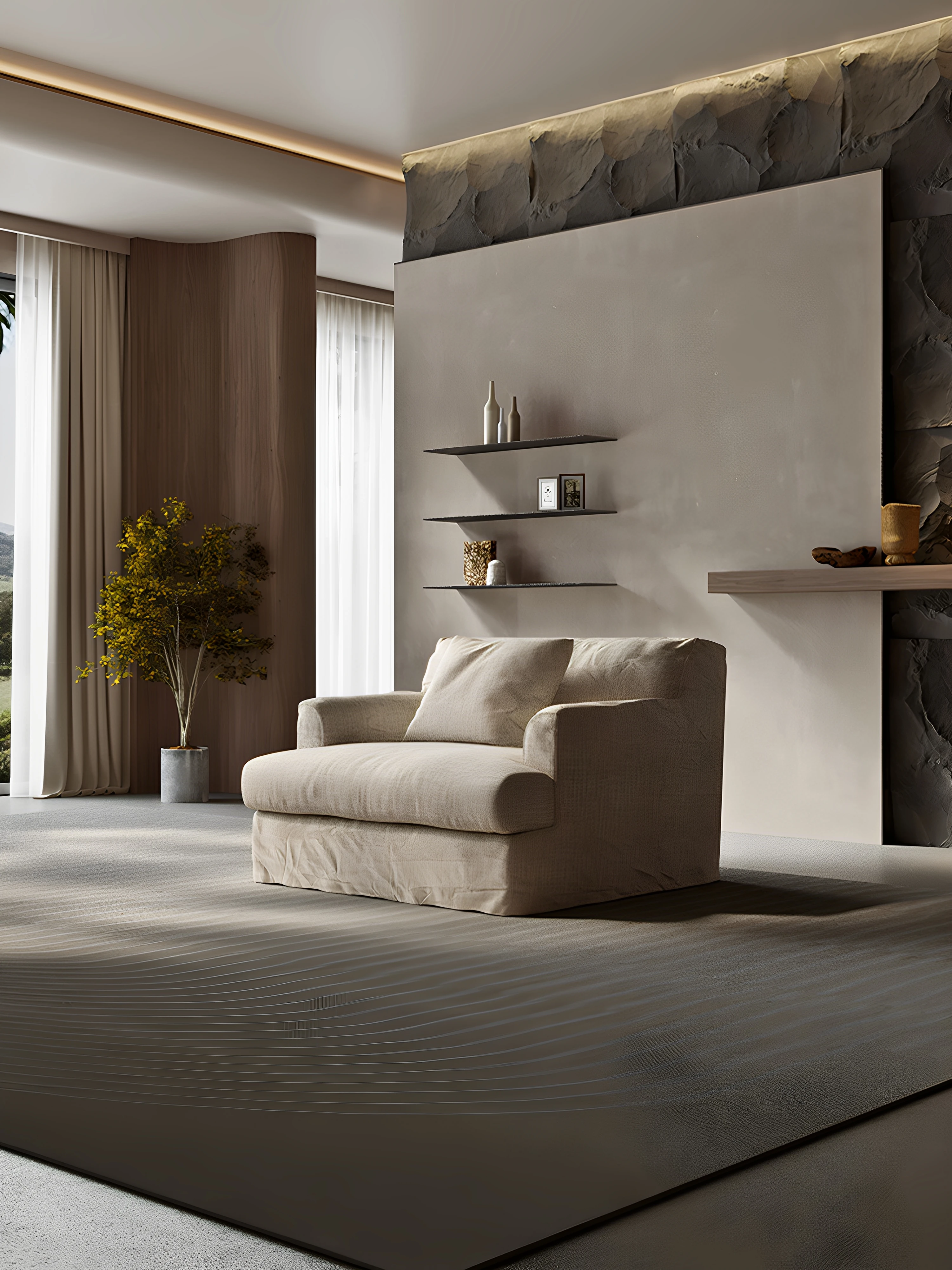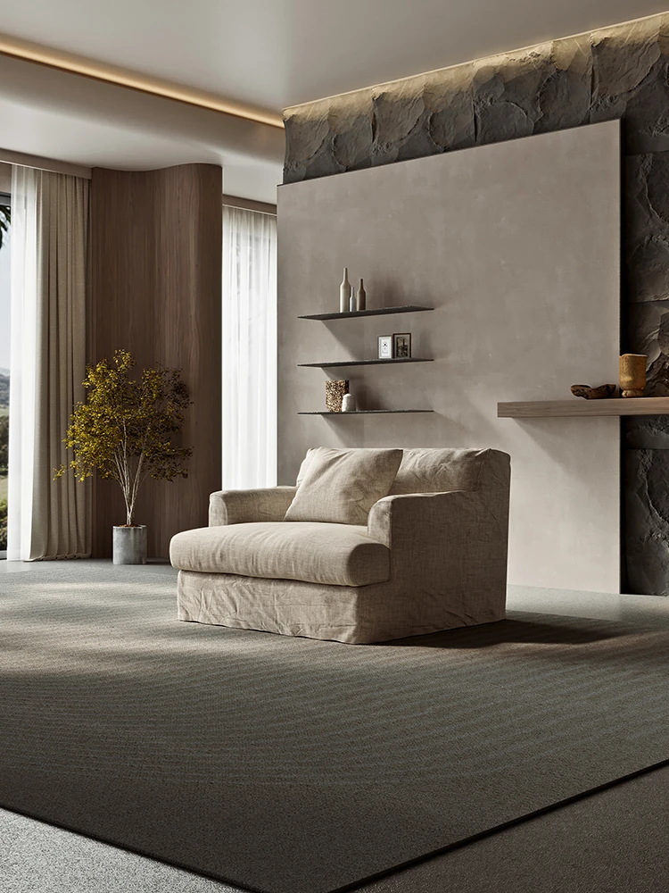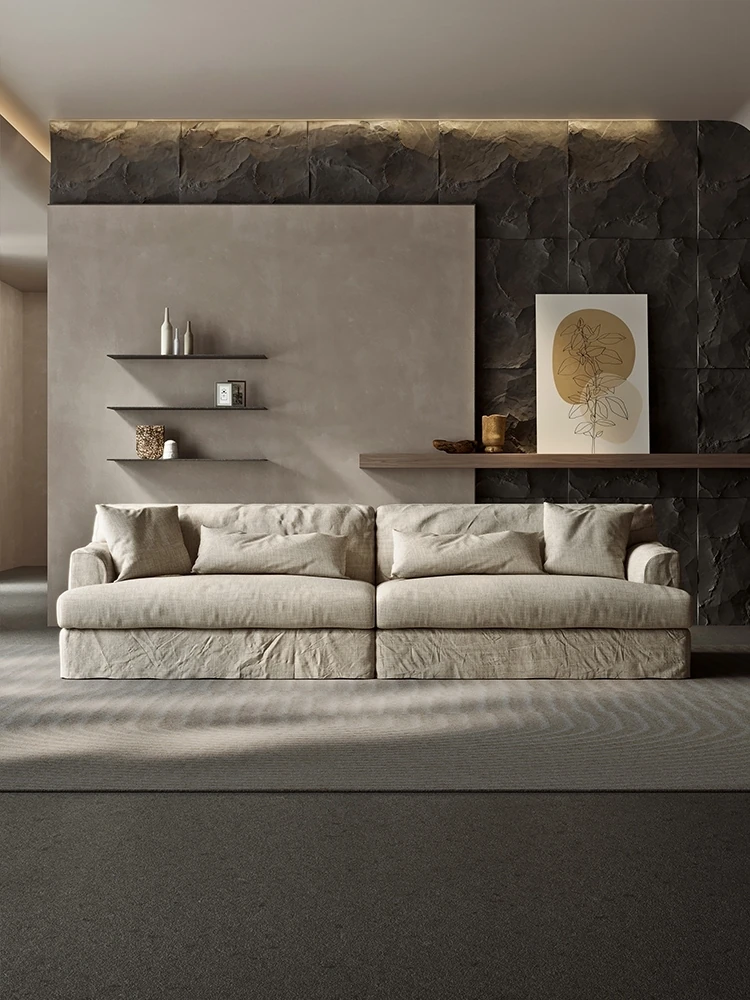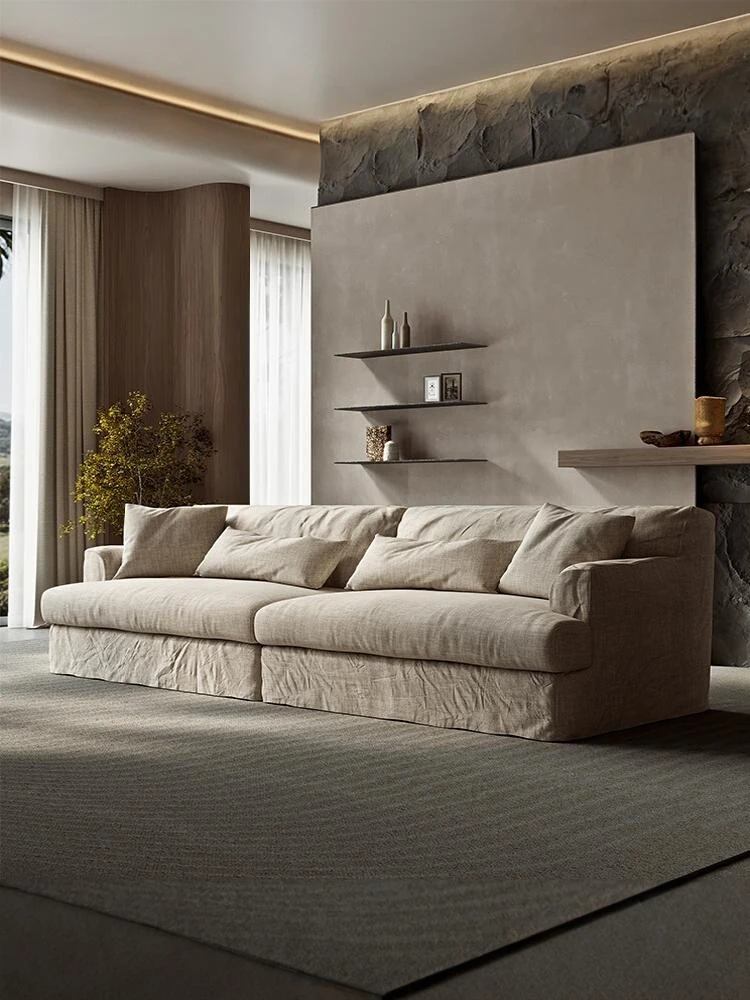 朴素で心地よい侘寂風の麻とコットンのソファ - 洗濯可能なリネン素材、3人掛け直線デザイン、民宿やリビングにぴったりの爽やかな風を感じるソファ!