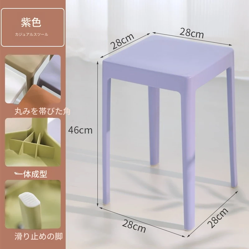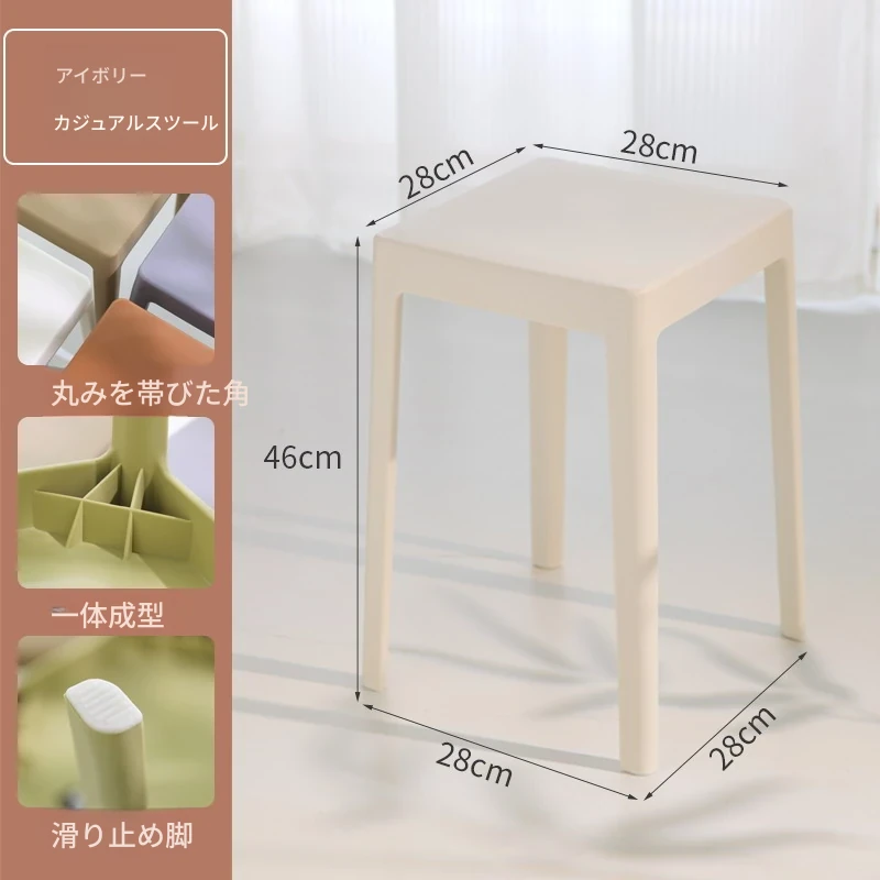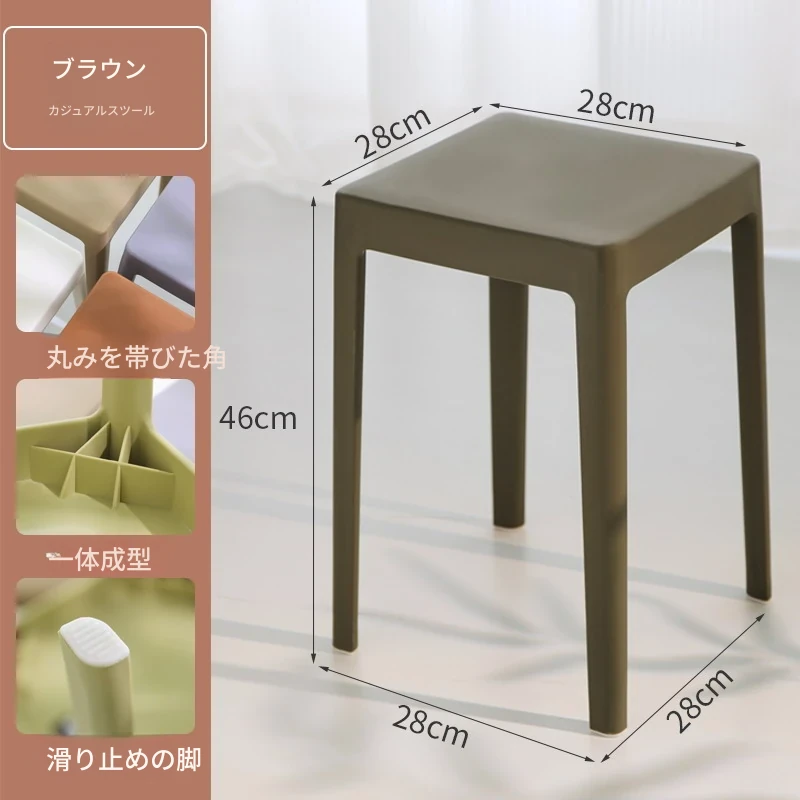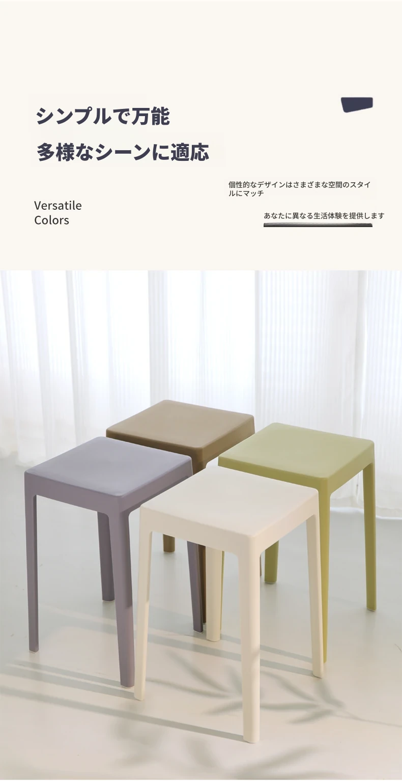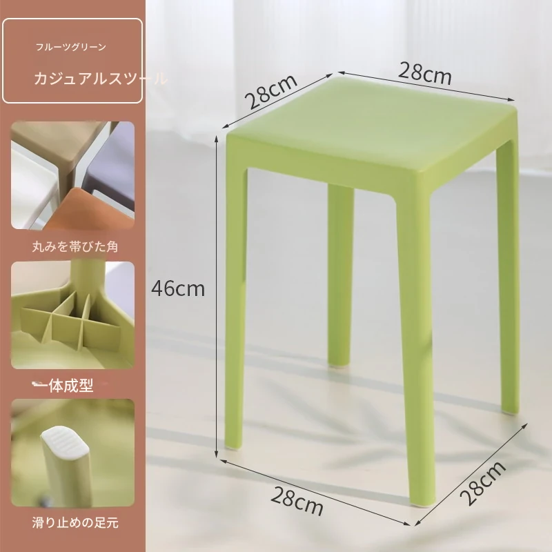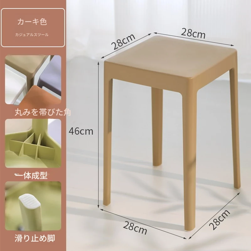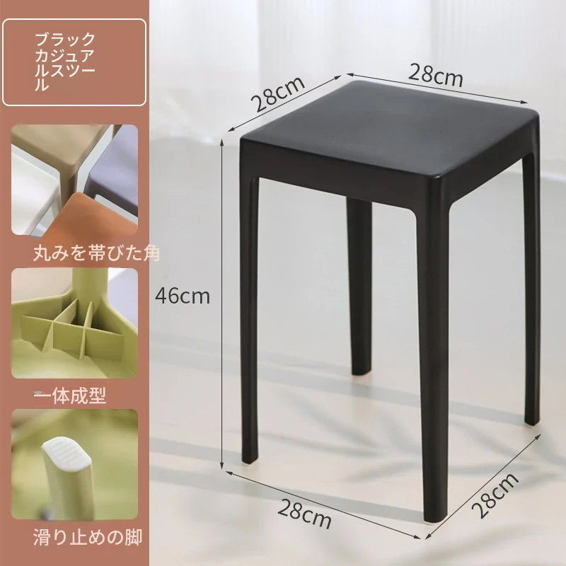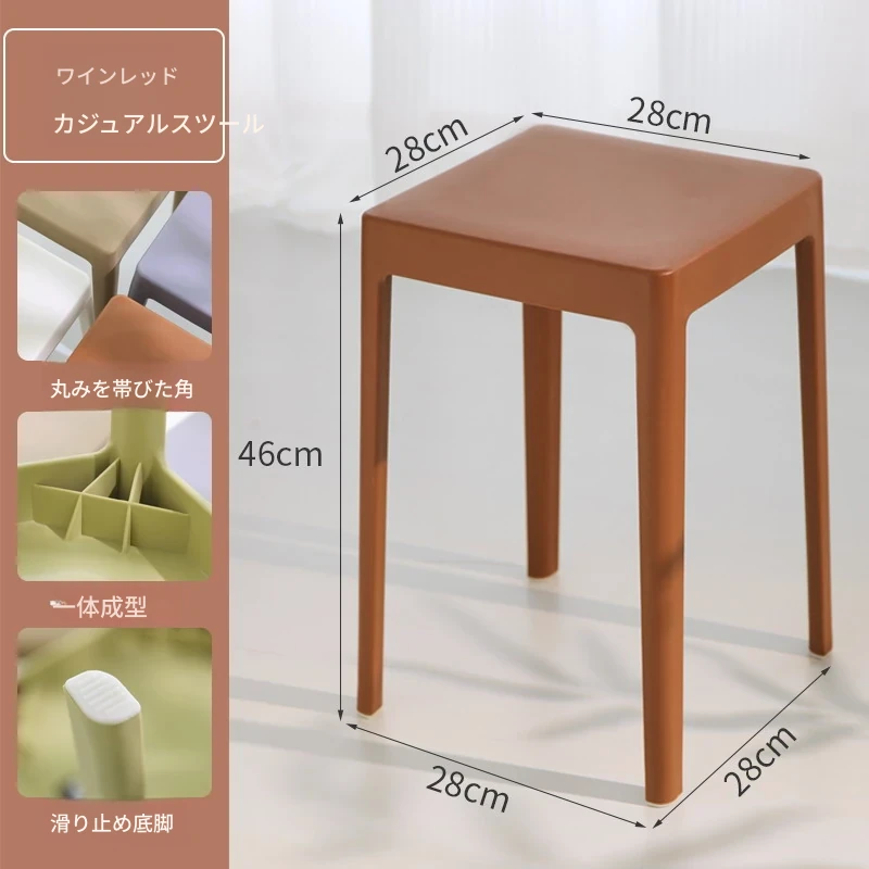 家庭用プラスチック製厚手スタッキング大人用角椅子 | モダンシンプルなデザイン | 高さ調整可能な補助ダイニングチェア | 軽量で便利なゴム製スツール