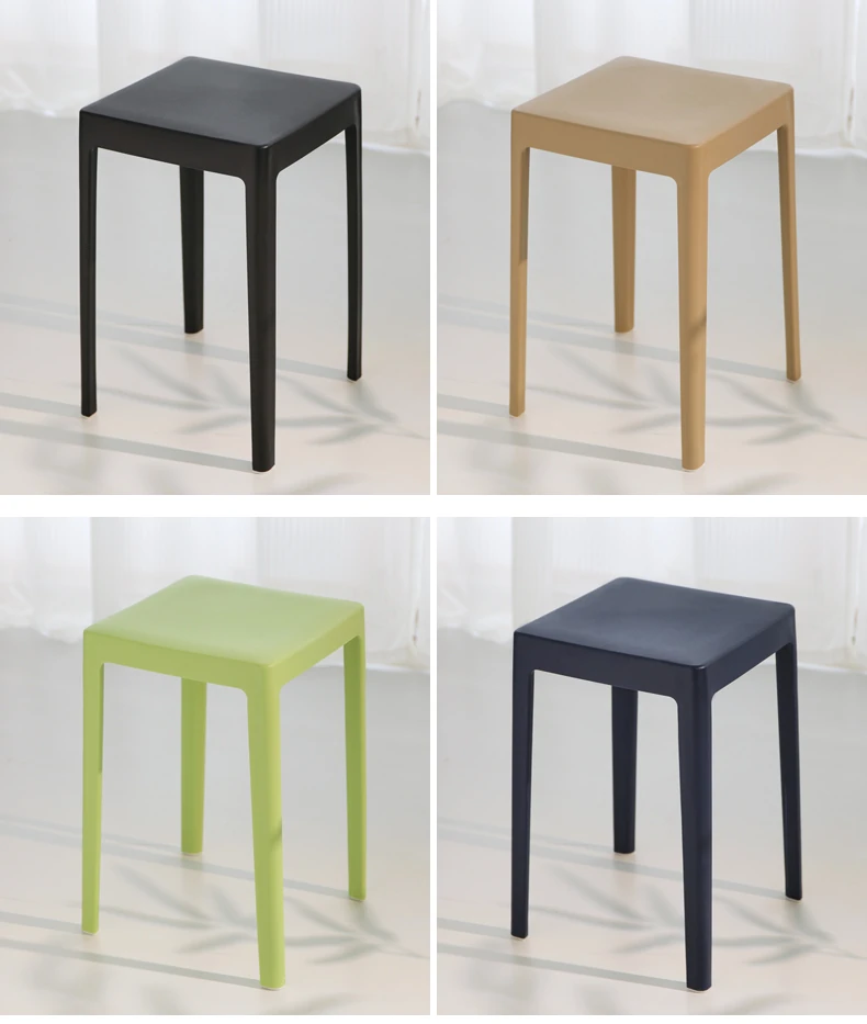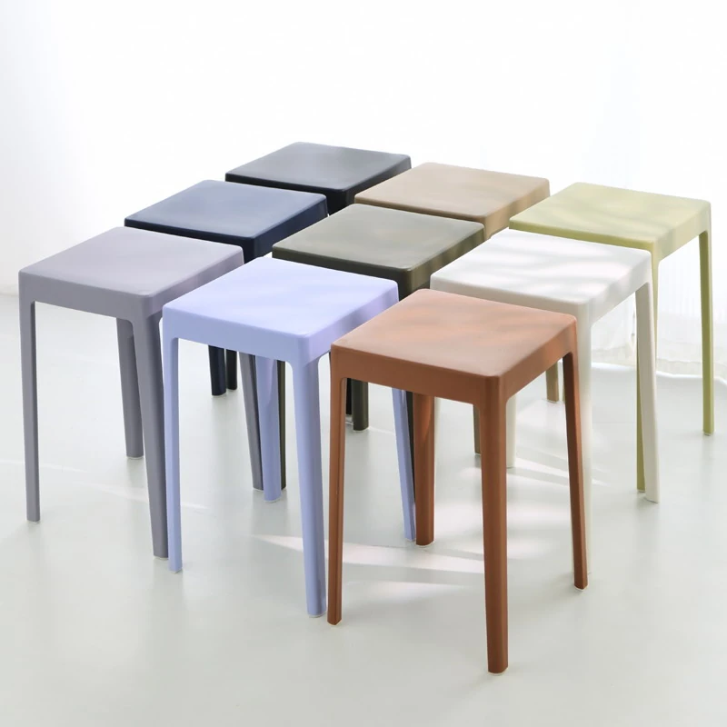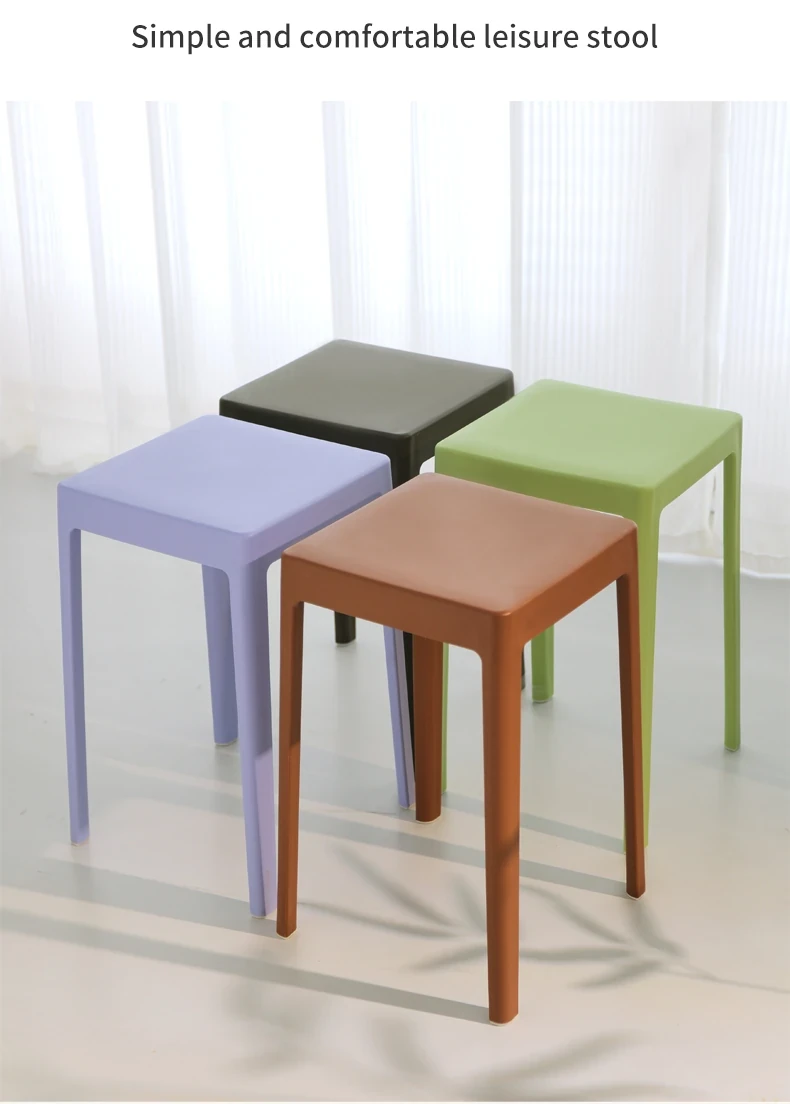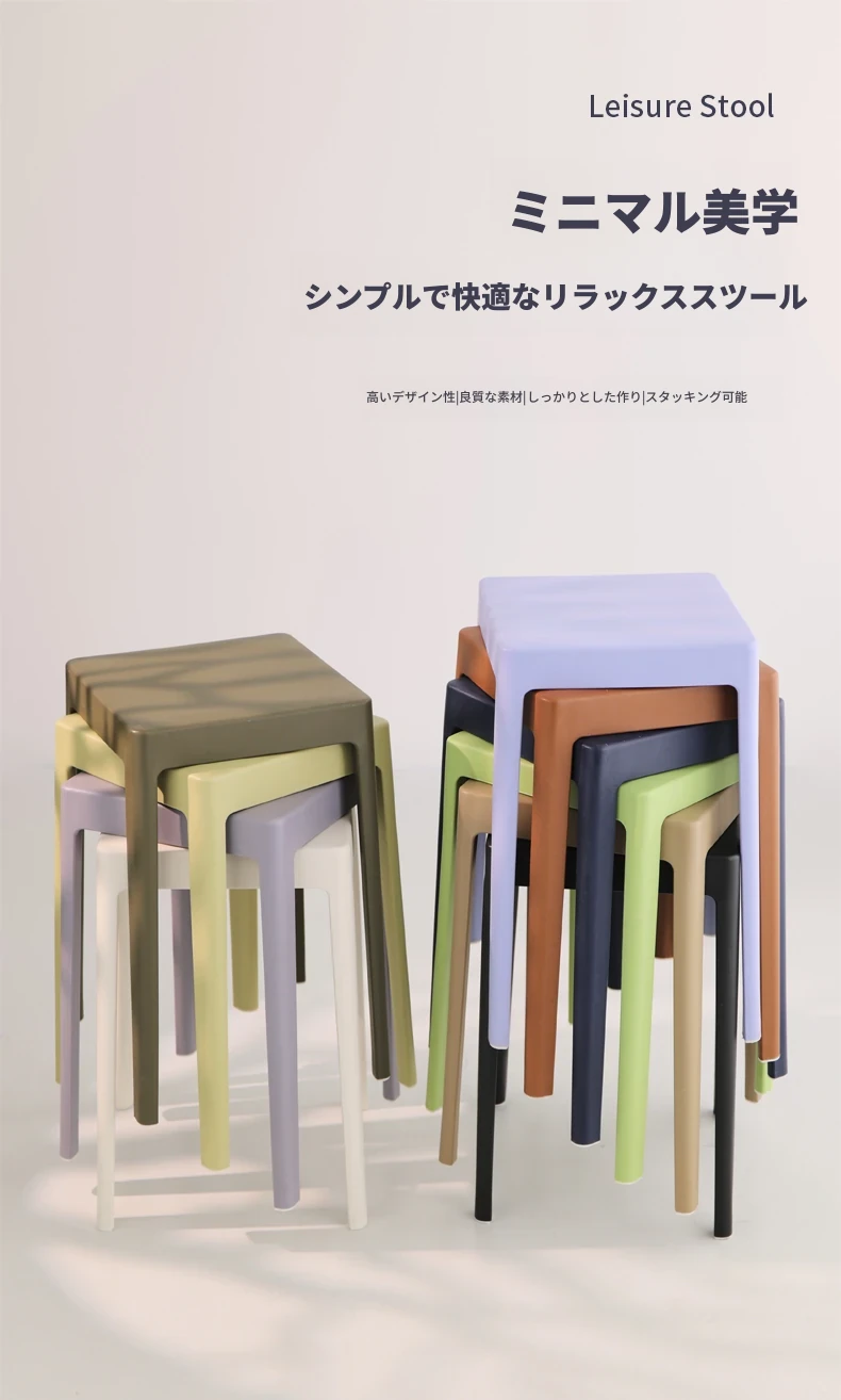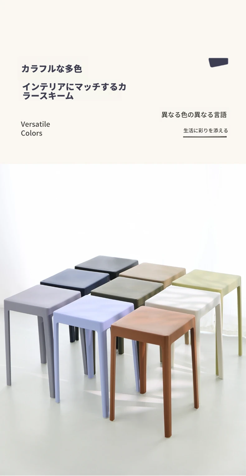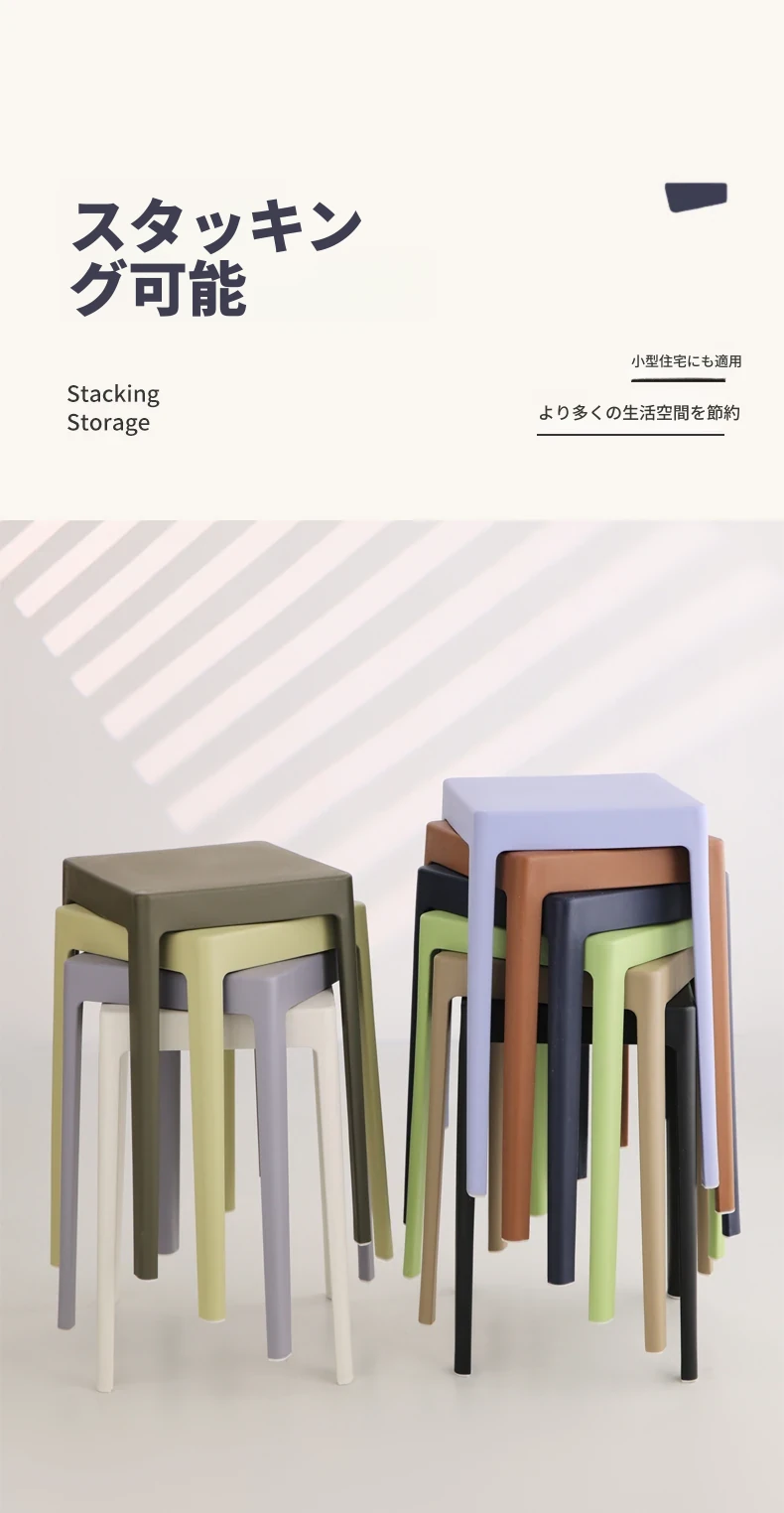 家庭用プラスチック製厚手スタッキング大人用角椅子 | モダンシンプルなデザイン | 高さ調整可能な補助ダイニングチェア | 軽量で便利なゴム製スツール