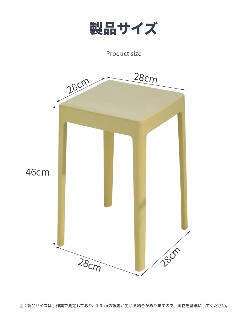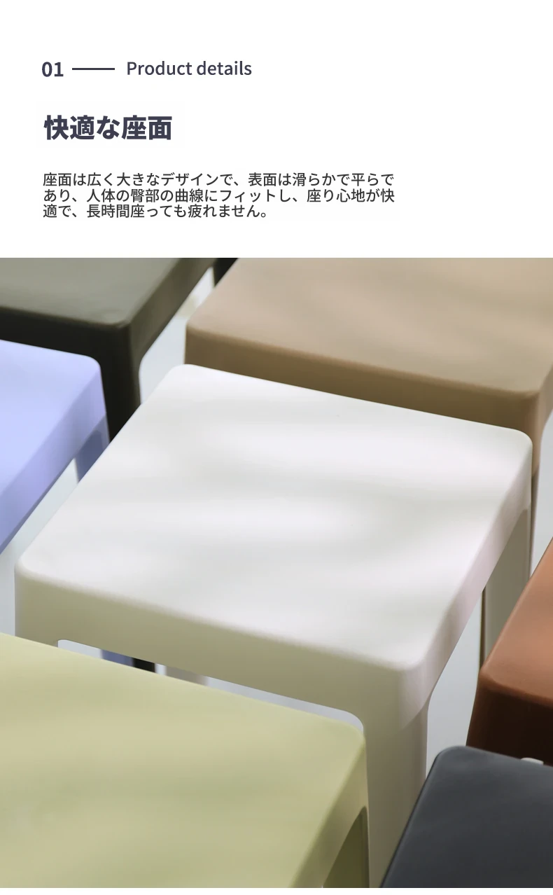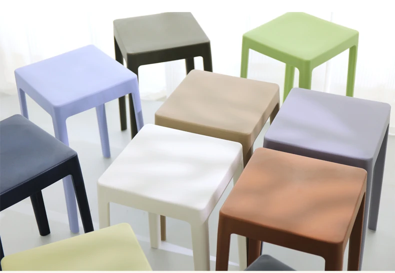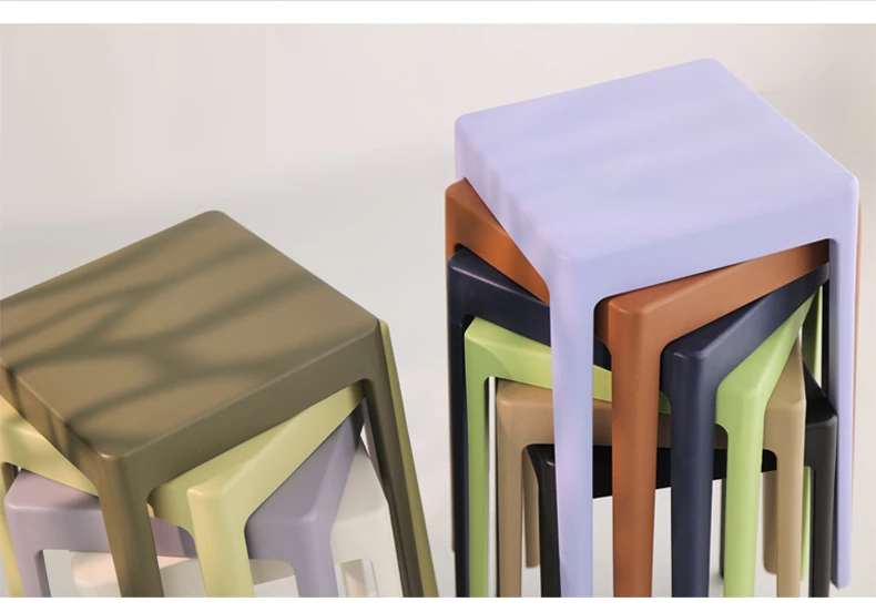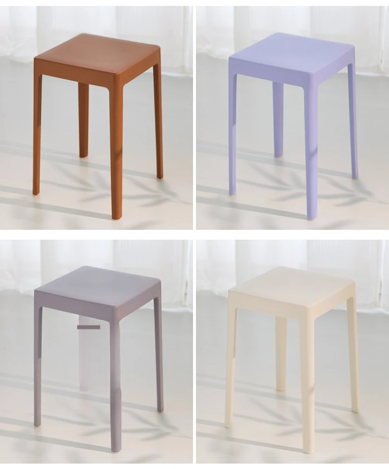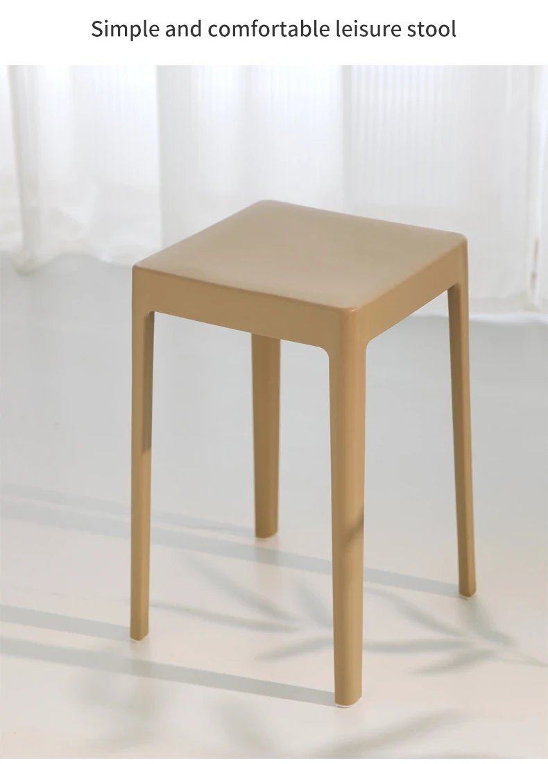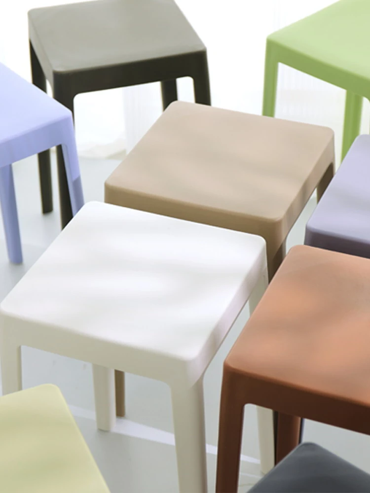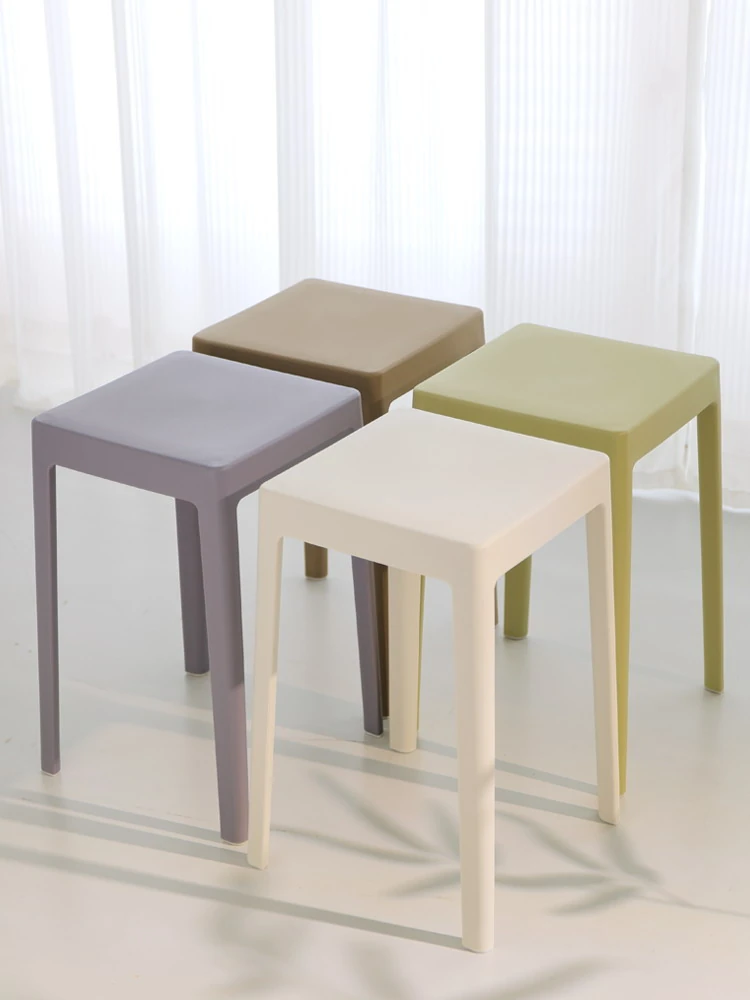 家庭用プラスチック製厚手スタッキング大人用角椅子 | モダンシンプルなデザイン | 高さ調整可能な補助ダイニングチェア | 軽量で便利なゴム製スツール