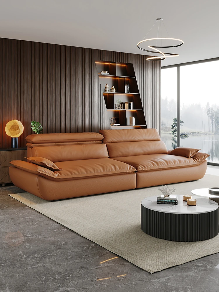 Puxiangji Minimalist Italian Genuine Leather Sofa - Modern Simple Design for Large Living Rooms & Villas, Designer Straight Combination