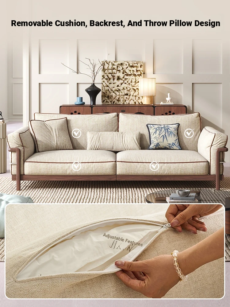 Andi Sofa - Mid-Century Modern Upholstered Sofa with North American Black Walnut Solid Wood Frame, Removable and Washable Covers, Perfect for Your Living Room!