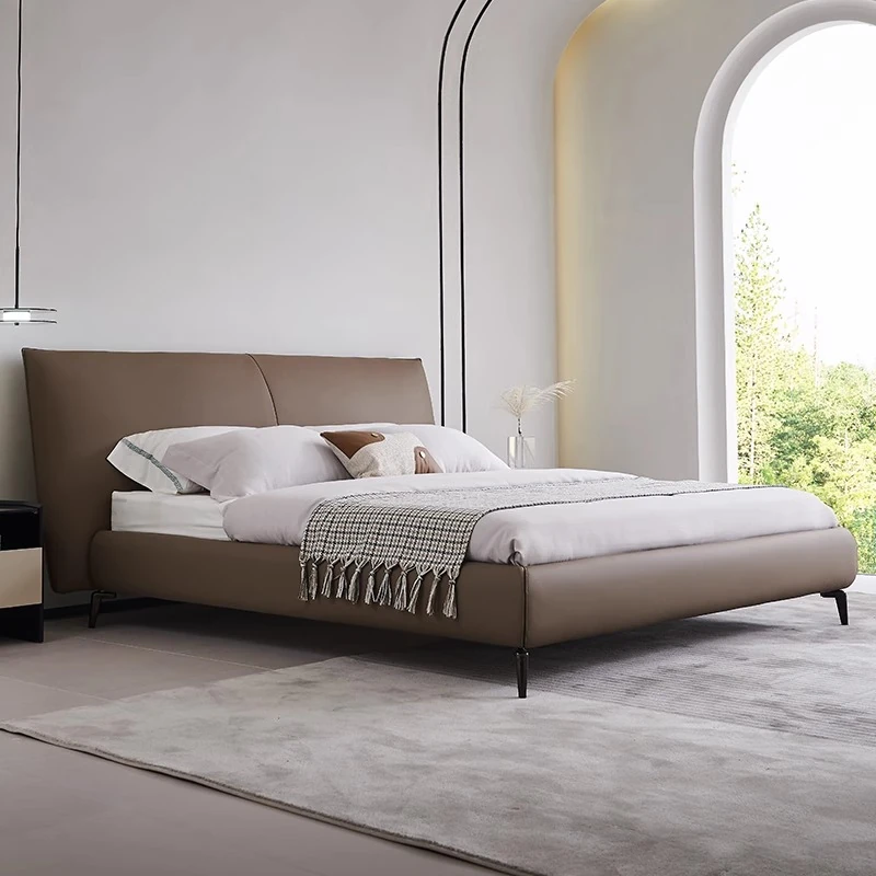 朴笙記 雪隆 中古真皮ベッド モダンミニマリスト スモールハウス向け 北欧イタリアンスタイル 極簡主寝室用 ダブルベッド 結婚用ベッド