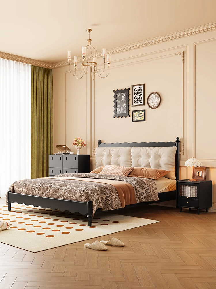 パーソン記 フランス風レトロ 全木製 シンプル 高級感あふれる 中古風バタフライベッド 主寝室用 結婚用ダブルベッド 別荘にも最適