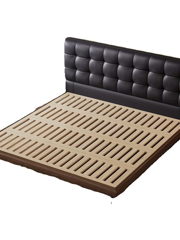 朴笙記のワッフルホワイトパイン本革ベッド - シンプルでモダンなデザイン、上質なダブルマリッジベッド。イタリアンミニマルスタイルのレトロな大床で、特別なひとときを演出します。