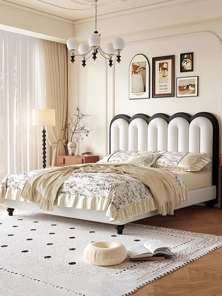 朴笙記 ユユウ 本革ベッド モダンシンプル レトロクリーム風 イタリアンミニマリズム 主寝室用 ダブルベッド リップル婚礼ベッド 夢のようなデザインで、贅沢な寝心地を体験しませんか?
