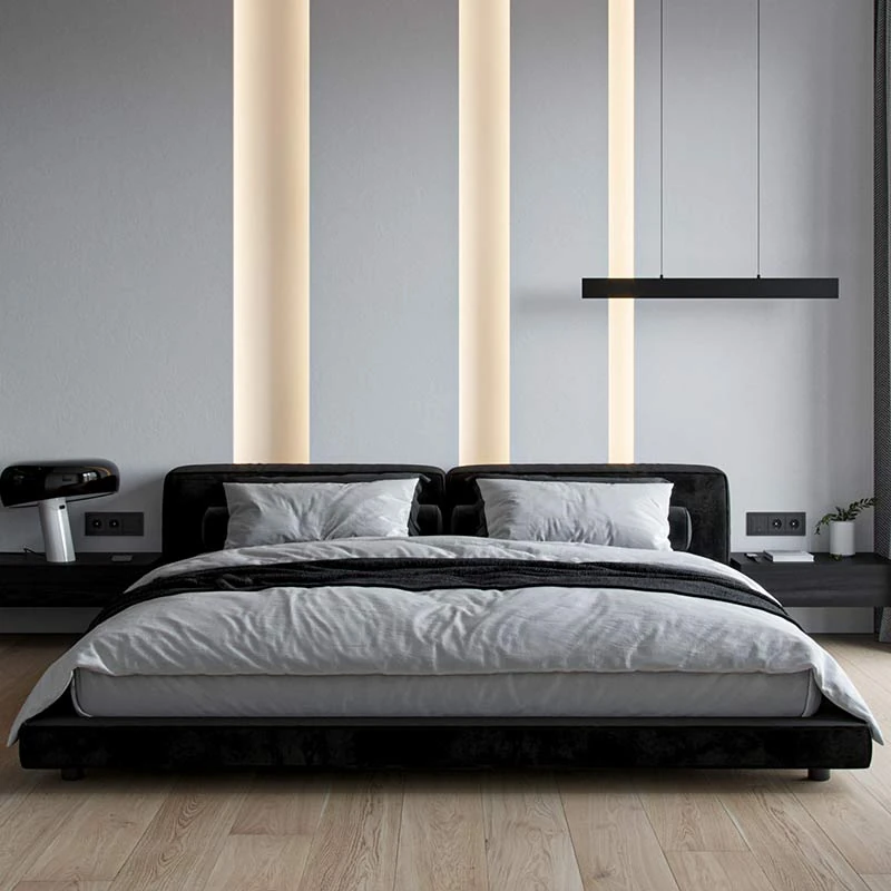 朴笙記 エレガントな布製ベッド - シンプルでモダンなデザイン、イタリアンミニマリズムを追求した羽毛仕立てのフロアベッド。大小様々なスペースに最適なブナ材使用で、居心地の良さとスタイルを両立!