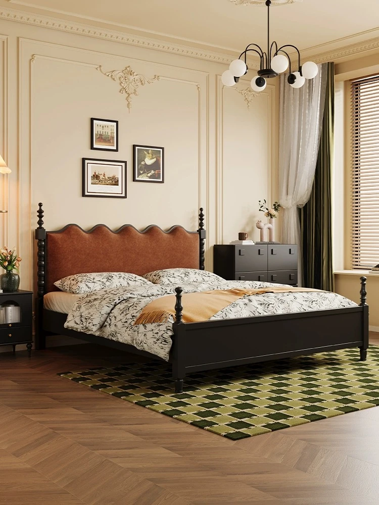 朴笙記フランス風レトロ全木製シンプル高級ビンテージ蝶型ベッド 主寝室用 結婚用ダブルベッド ヴィラに最適!洗練されたデザインで、心地よい眠りをお届けします。