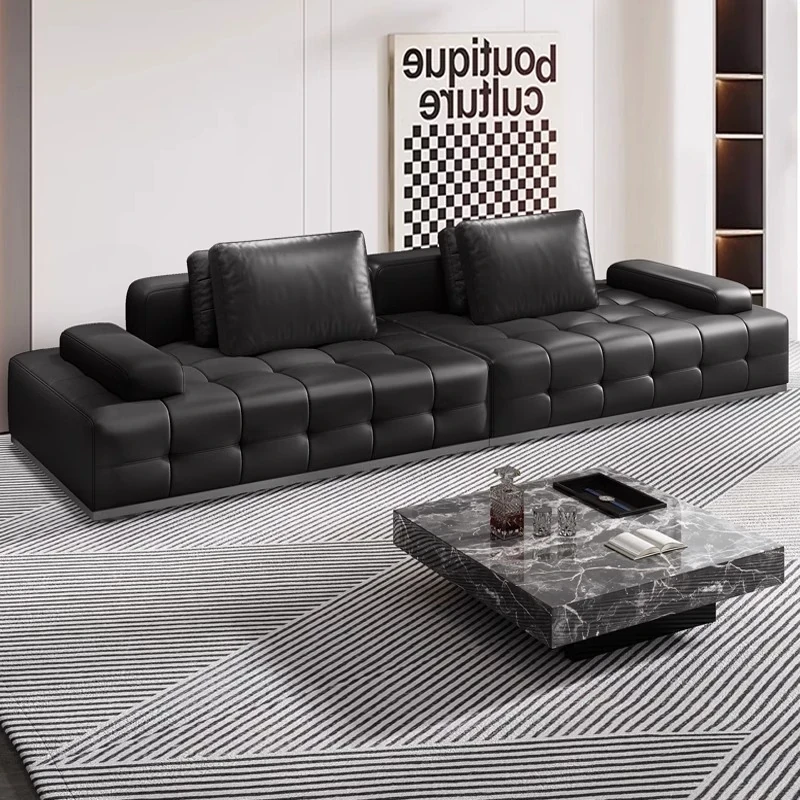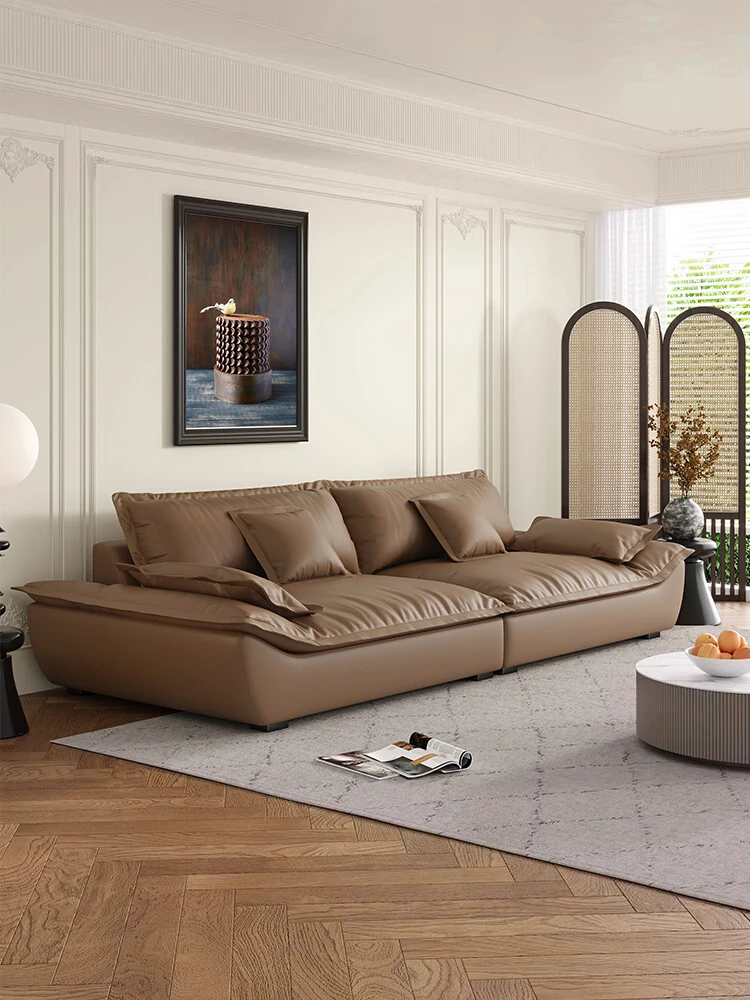 イタリアンミニマルリビング真皮セーリングソファ|超広々とした座面|雲のような快適さ|小型住宅に最適なモダンシンプルラウンジソファ
