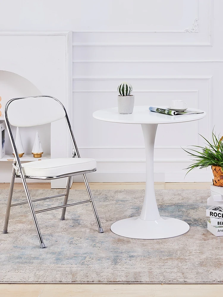 北欧スタイルのシンプルなホワイトチューリップ塗装ラウンドテーブル - おしゃれなカフェやバルコニーに最適!リラックスした会話や接待にぴったりなデザイン。おしゃれな空間を演出しましょう!