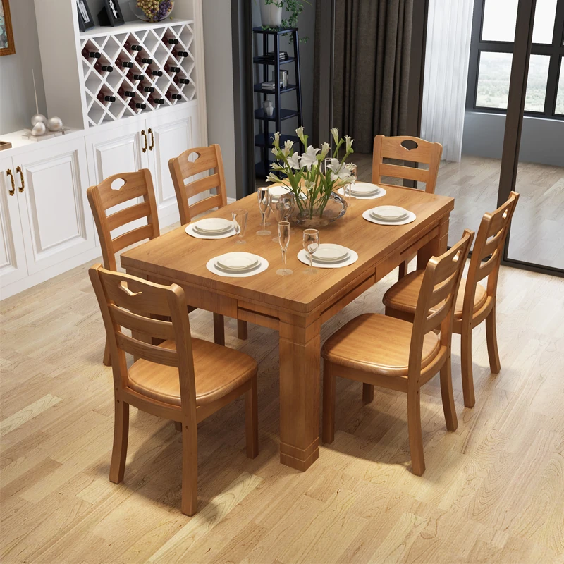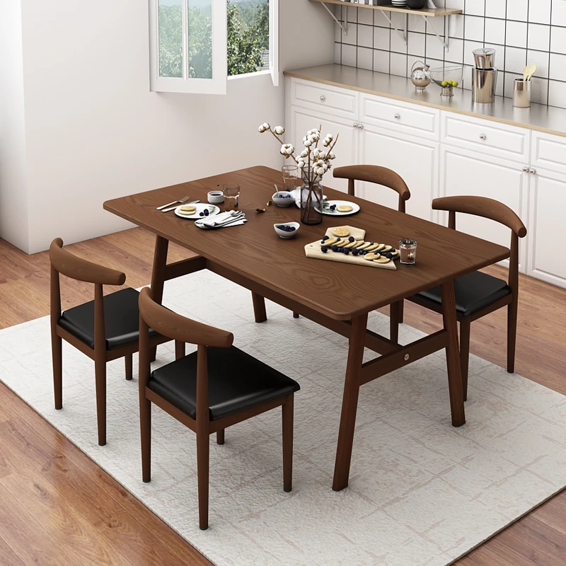 モダンでシンプルな実木製の長方形ダイニングテーブルセット!小さなスペースにもぴったりなサイズで、家庭やホテルに最適。おしゃれなデザインで、食事の時間を特別なものにします。