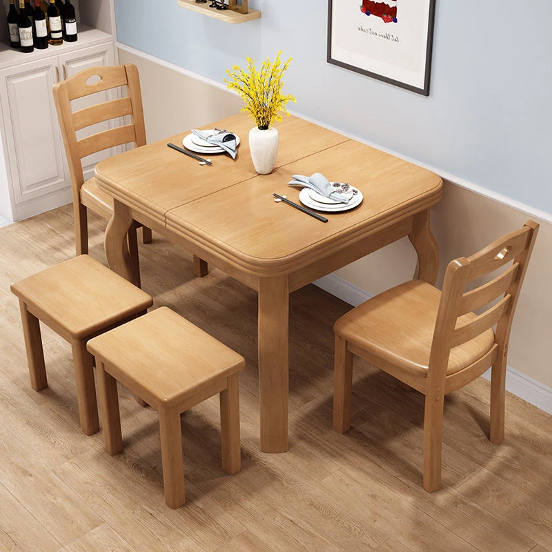 送料無料!西藏・新疆産の伸縮式全実木製ダイニングテーブルセット4人用 - モダンでシンプルな長方形、折りたたみ式で使い勝手抜群!家族や友人との食事がもっと楽しくなるアイテムです。